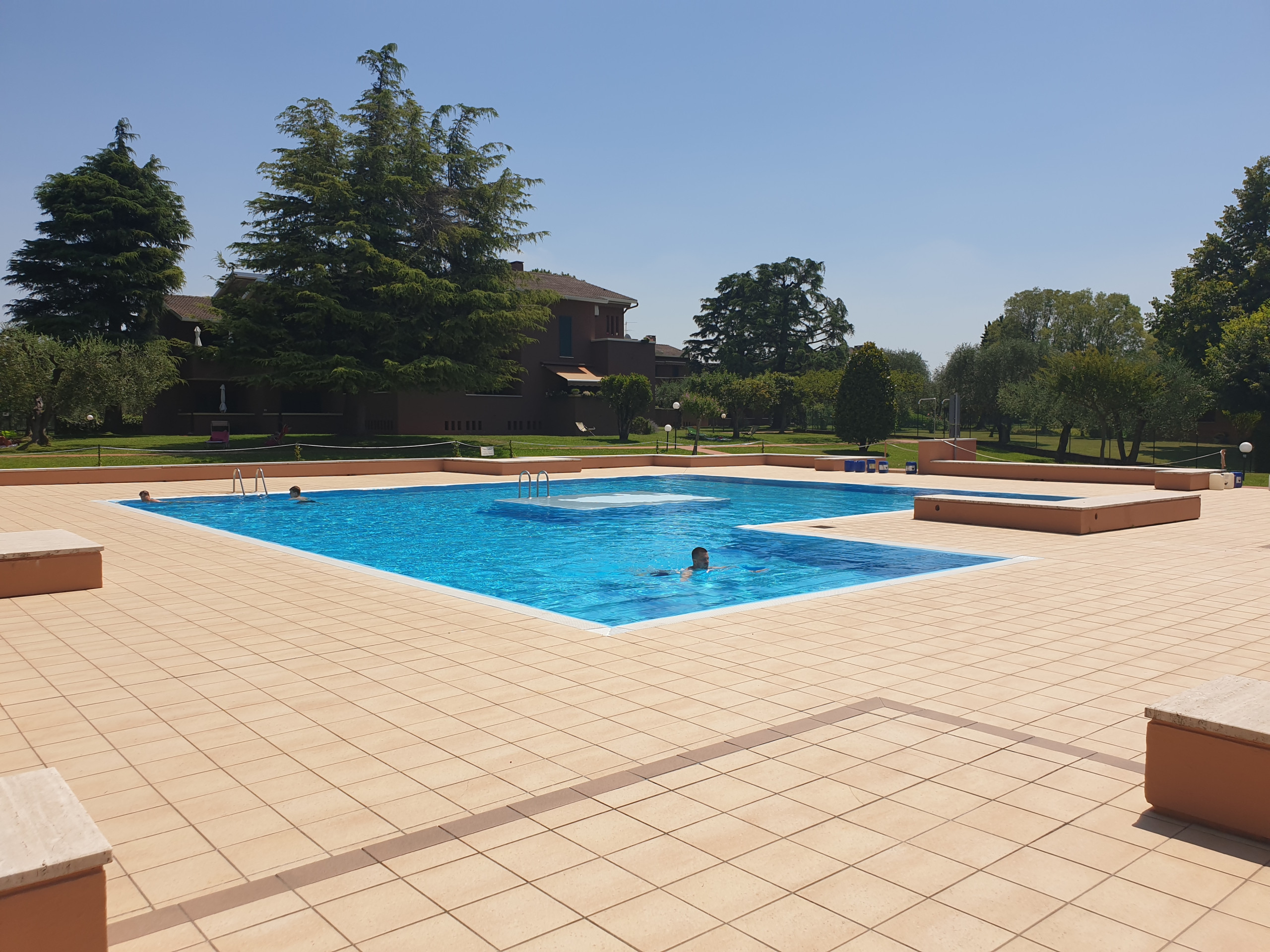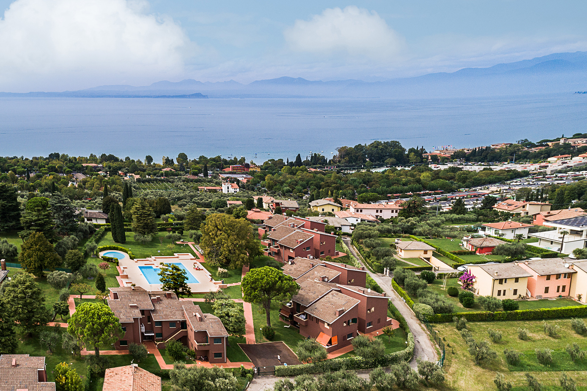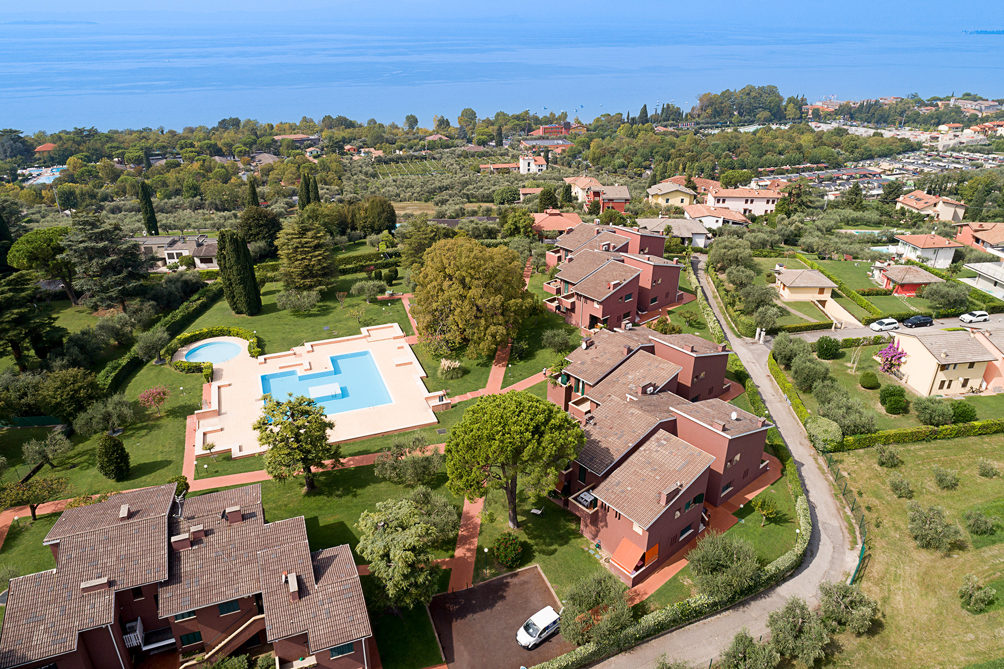 Dalla terrazza, attrezzata con tavolo e sedie, si può godere di una magnifica vista lago con tramonti mozzafiato. Il complesso dispone di ampio giardino recintato con alberi e di una piscina per adulti ed una per bambini (periodo di apertura garantito 01/06-30/09), sedie a sdraio in dotazione.