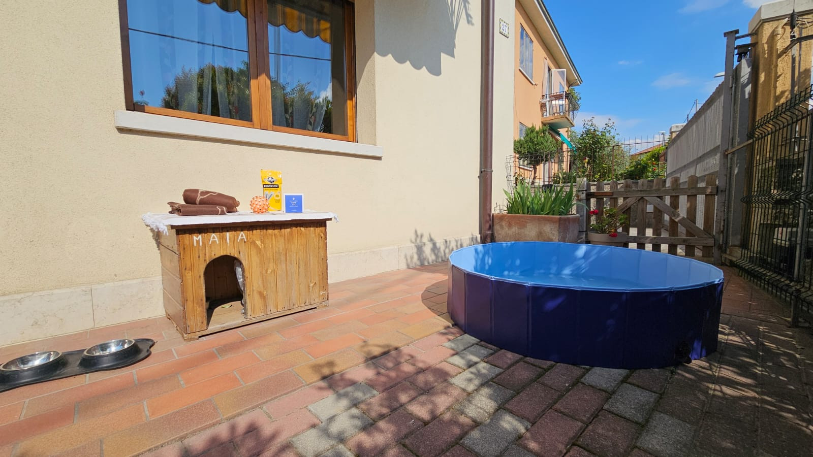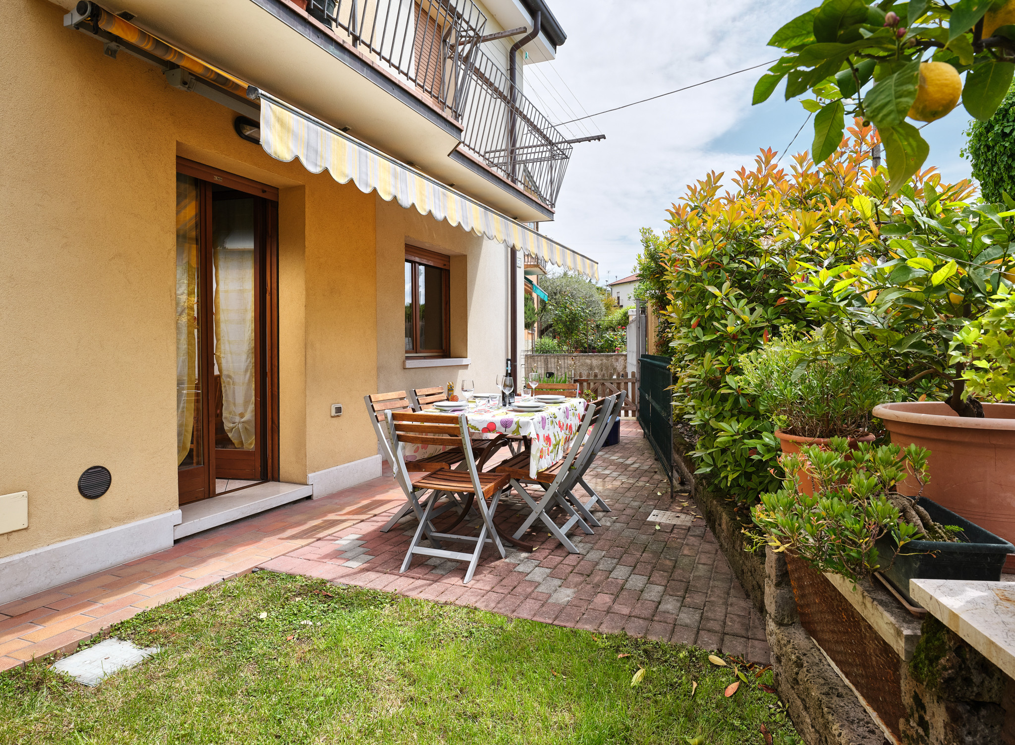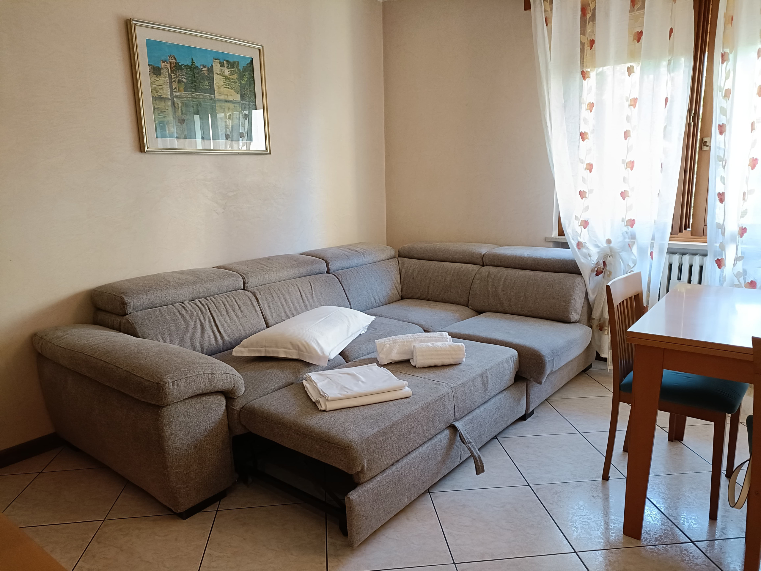 very spacious rooms, large living room, large kitchen with direct access to patio. lots of storage space. two tables with chairs and plenty of seating, including a large couch. two bathrooms. fence around garden good for dog, including close by dog walking possibilities. close to Bardolino. would stay there again!