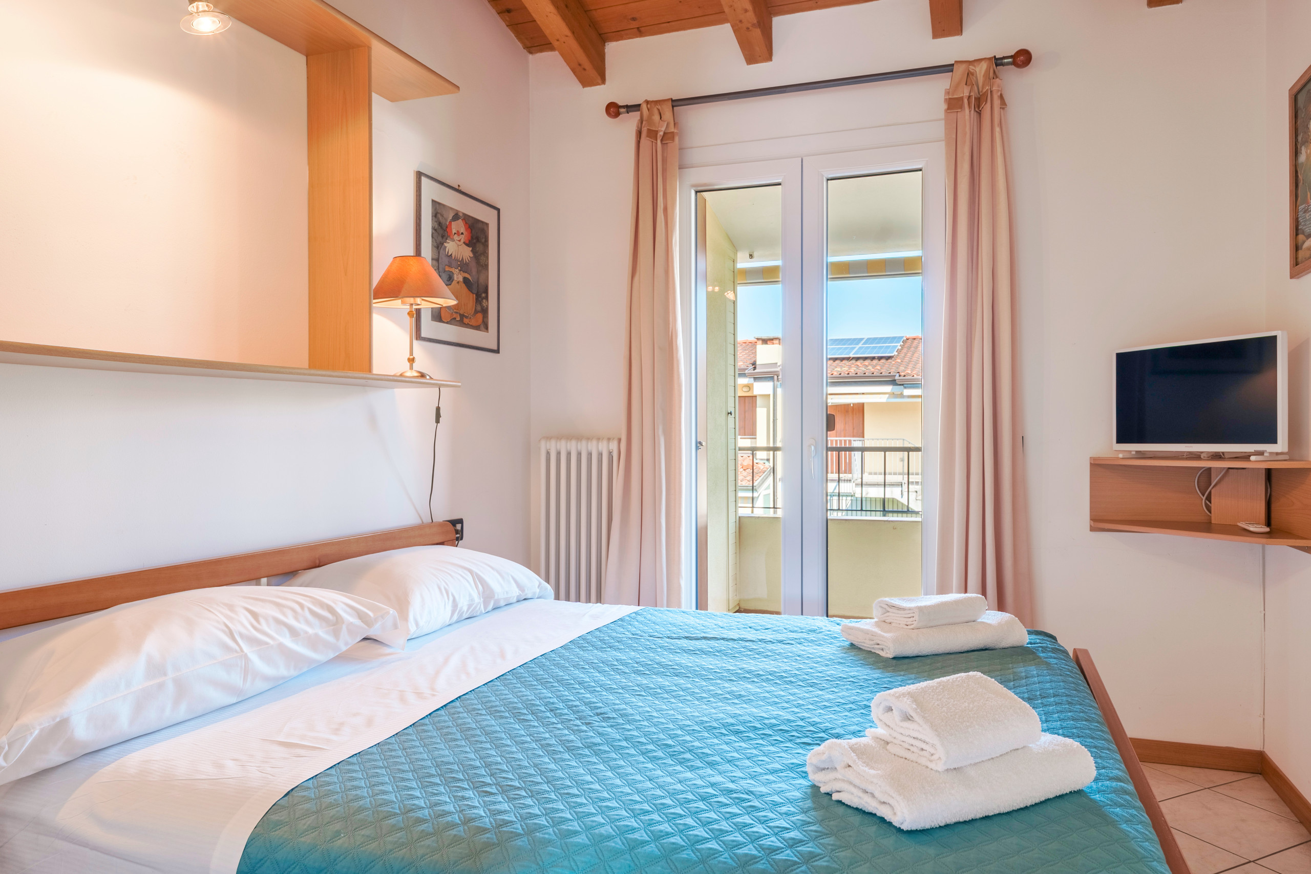 Grazioso appartamento bilocale situato al primo piano del tranquillo complesso residenziale Gardenia di Lazise, a circa 1.2 km dal centro di Lazise (15 minuti a piedi) e 1.5 km dalla spiaggia. L'intimo contesto residenziale di sole 8 unità, dispone di piscina condominiale (periodo di apertura garantito 15/05-30/09), ed ampia zona verde. L'appartamento, rinnovato nel 2025, si apre sulla zona giorno con vista sulla piscina che dispone di un balconcino arredato con tavolino, sedie e tenda da sole. Il soggiorno dispone di angolo cottura con piccolo frigorifero con cella freezer, lavastoviglie, forno a microonde, fornello a gas, bollitore, tostapane e macchina da caffè americano. Divano letto matrimoniale, wifi, tv satellitare e aria condizionata posizionata in corridoio tra la zona giorno e la camera da letto. Bagno con wc, nuova cabina doccia ed asciugacapelli. La camera matrimoniale, con accesso al terrazzino ombreggiato sul retro, dispone di spazioso guardaroba, cassaforte, ventilatore a pale a soffitto, letto matrimoniale e poltrona letto singola. Posto auto coperto in garage e cantina con lavatrice e 2 biciclette a disposizione degli ospiti. Appartamento per non fumatori, animali domestici non ammessi.
