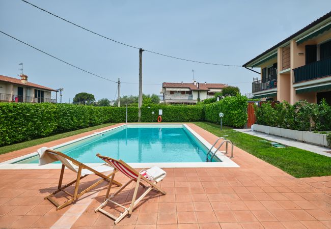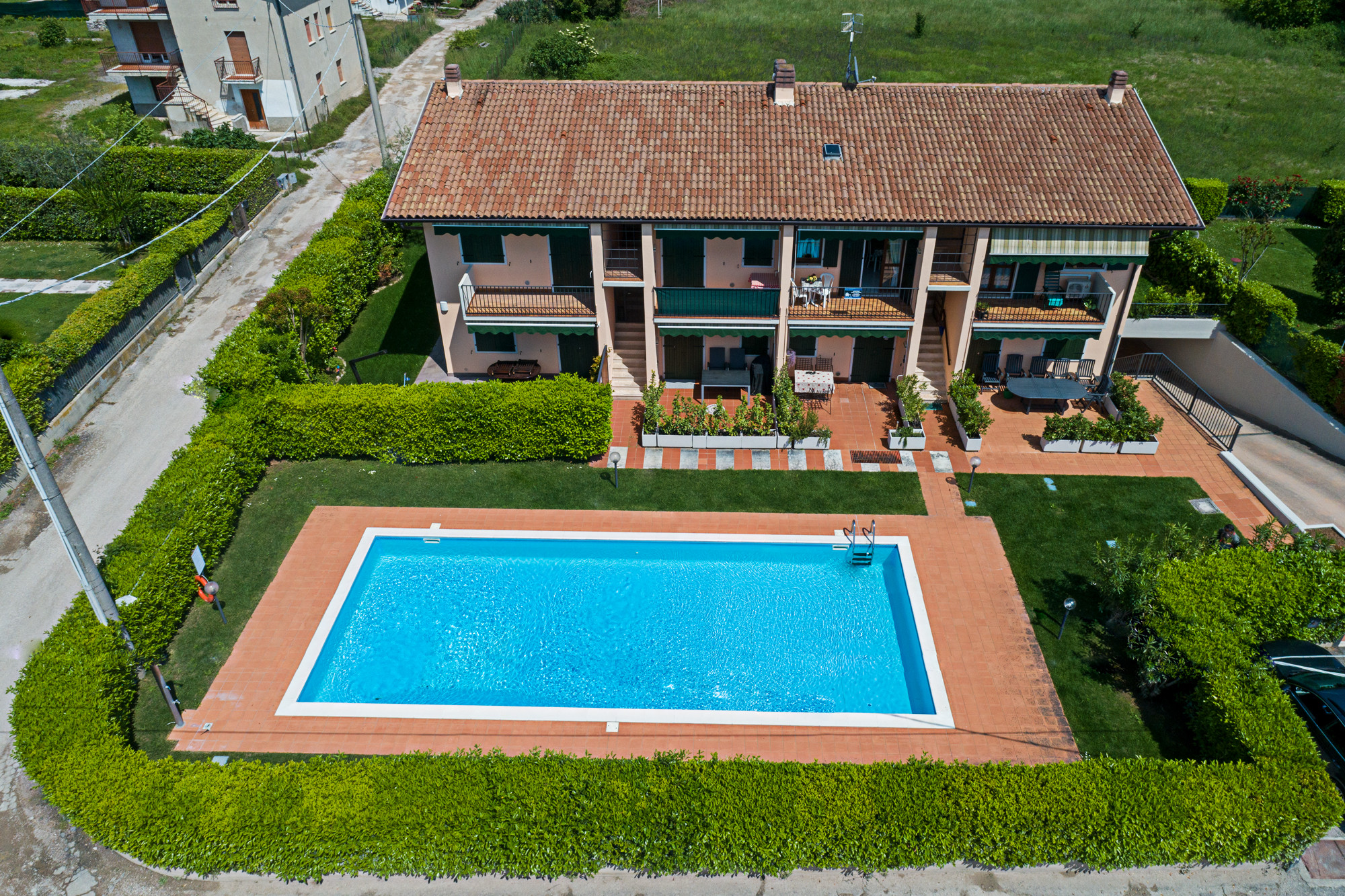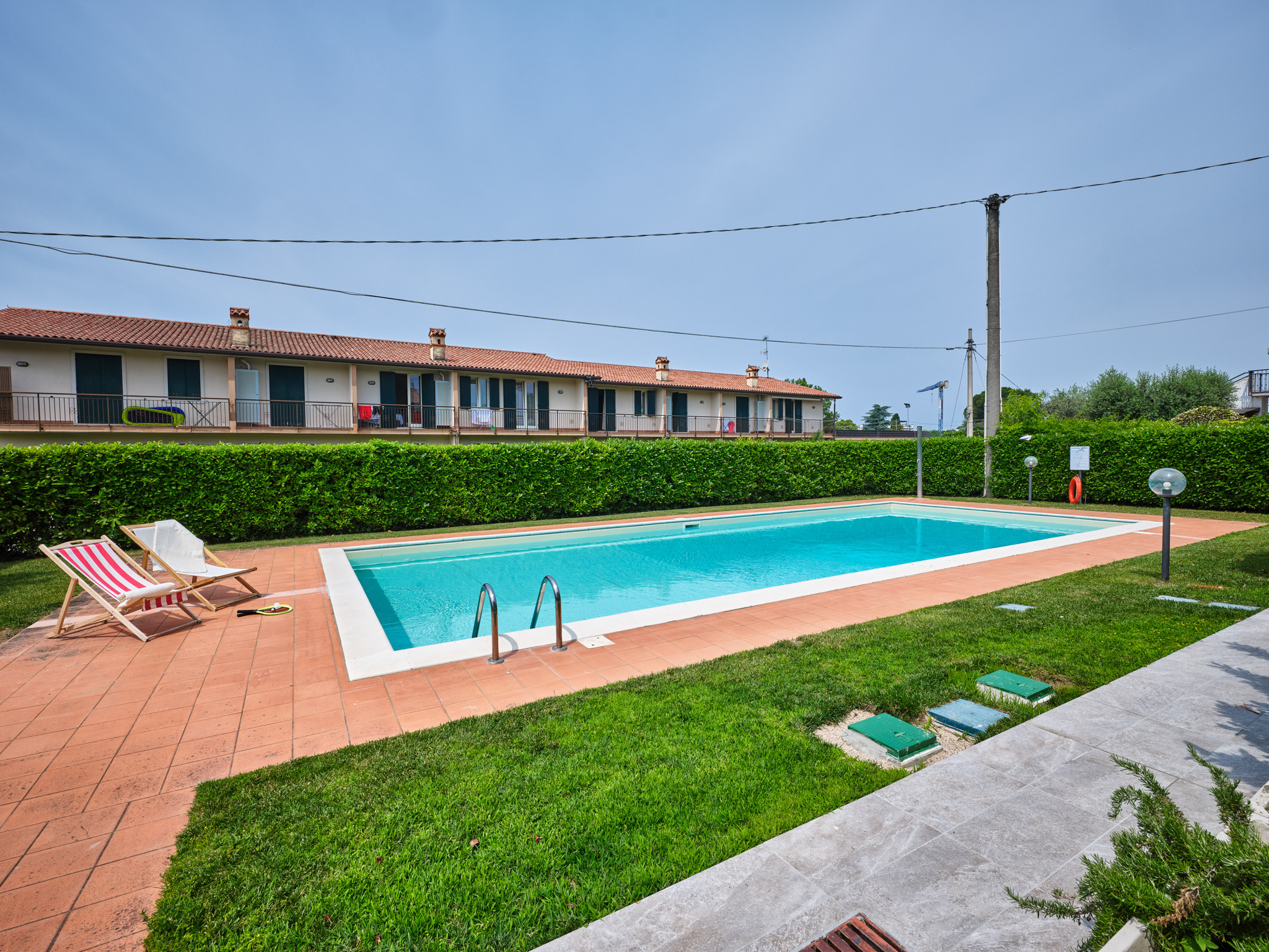 Grazioso appartamento bilocale situato al primo piano del tranquillo complesso residenziale Gardenia di Lazise, a circa 1.2 km dal centro di Lazise (15 minuti a piedi) e 1.5 km dalla spiaggia. L'intimo contesto residenziale di sole 8 unità, dispone di piscina condominiale (periodo di apertura garantito 15/05-30/09), ed ampia zona verde. L'appartamento, rinnovato nel 2025, si apre sulla zona giorno con vista sulla piscina che dispone di un balconcino arredato con tavolino, sedie e tenda da sole. Il soggiorno dispone di angolo cottura con piccolo frigorifero con cella freezer, lavastoviglie, forno a microonde, fornello a gas, bollitore, tostapane e macchina da caffè americano. Divano letto matrimoniale, wifi, tv satellitare e aria condizionata posizionata in corridoio tra la zona giorno e la camera da letto. Bagno con wc, nuova cabina doccia ed asciugacapelli. La camera matrimoniale, con accesso al terrazzino ombreggiato sul retro, dispone di spazioso guardaroba, cassaforte, ventilatore a pale a soffitto, letto matrimoniale e poltrona letto singola. Posto auto coperto in garage e cantina con lavatrice e 2 biciclette a disposizione degli ospiti. Appartamento per non fumatori, animali domestici non ammessi.