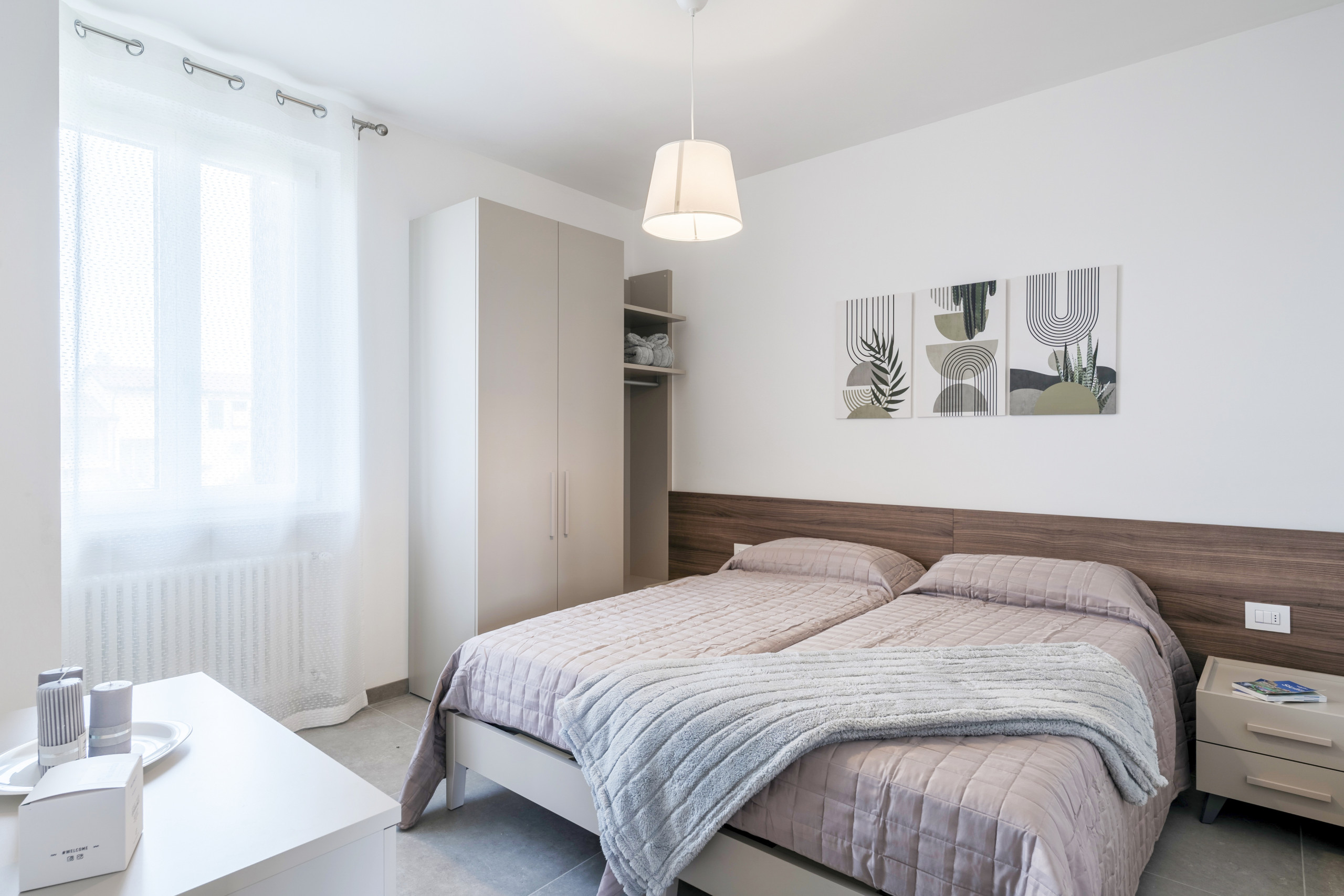 La camera matrimoniale dispone di un ampio spazio di manovra ai piedi del letto, cassaforte e di un grande guardaroba. La seconda camera è composta da un letto a castello (i letti misurano 80x190 cm) ed un letto estraibile oltre ad un guardaroba ed una libreria. Entrambe le camere affacciano sul portico con tenda da sole e l'ampio giardino posteriore. La zona giorno è composta da divano letto matrimoniale ed un'ampia cucina attrezzata con piano cottura a gas, frigorifero, congelatore, forno, tostapane, macchina da caffè americano e lavastoviglie. Aria condizionata e wifi a disposizione degli ospiti. La zona giorno affaccia su un secondo portico coperto con tenda da sole, barbecue/camino e secondo tavolo con sedie. Nel piano interrato accessibile atrtaverso uno scivolo è presente un posto auto in garage ed una cantina con lavatrice e parcheggio biciclette con possibilità di ricaricare le e-bike. Al piano terra, vicino all'ingresso del'appartamento, è presente un secondo posto auto scoperto privato. Animali non ammessi. E' vietato fumare in casa.