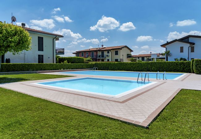 Spazioso appartamento trilocale di circa 65 metri quadrati, situato a Lazise, a circa 1500 metri dal centro storico e dalla spiaggia, nel complesso residenziale Miralago, con piscina e ampia zona solarium (apertura garantita dal 15/05 al 30/09). È disponibile un parcheggio pubblico per gli ospiti. L'appartamento al piano terra può ospitare da 4 a 6 persone ed è composto da un soggiorno con cucina attrezzata con frigorifero, piano cottura a gas, forno, macchina da caffè americano e tostapane, divano letto matrimoniale. Il soggiorno si affaccia su un bel giardino recintato adatto ad ospitare in sicurezza il vostro amico a quattro zampe. Ampia terrazza privata attrezzata con tenda da sole, tavolo e sedie per piacevoli pasti all’aperto. Bagno finestrato con lavatrice e box doccia, camera da letto matrimoniale con grande armadio e camera con letto a castello. Aria condizionata, TV satellitare e WiFi a disposizione degli ospiti. Gli animali domestici sono ammessi su richiesta. Non è consentito fumare all’interno dell’alloggio. Disponiamo di un secondo appartamento al piano primo con vista lago.
