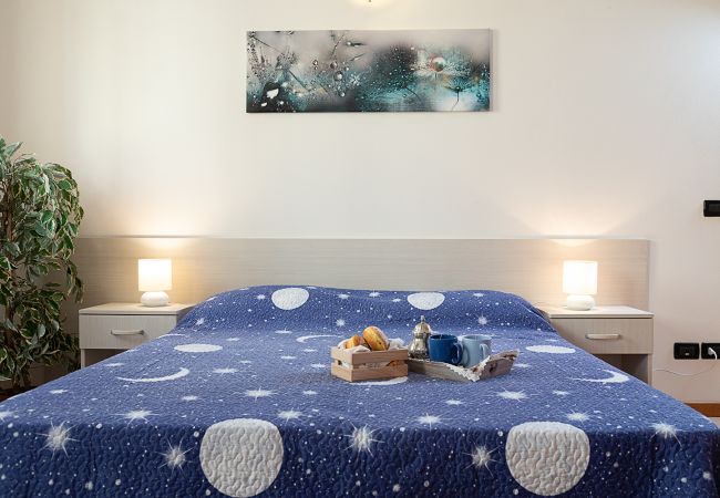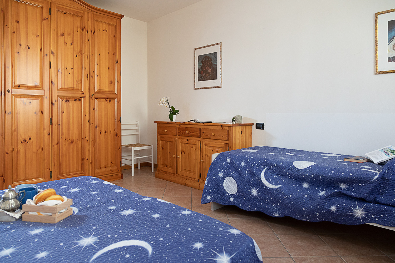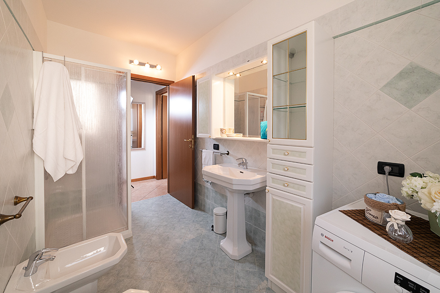 L’appartamento è situato al primo piano ed è composto da un’ampia zona giorno con moderna cucina, divano letto matrimoniale, spazioso tavolo da pranzo, Tv satellitare. La cucina è attrezzata con piatti e stoviglie e dispone di frigorifero, lavastoviglie, fornello con 4 fuochi, forno. Ampia terrazza abitabile con vista sul verde per piacevoli pranzi e cene all'aperto. La camera matrimoniale dispone di spazioso armadio con ante scorrevoli, la cameretta dispone di tre letti singoli e armadio a ponte. A disposizione degli ospiti un bagno finestrato con vasca da bagno ed un secondo bagno con doccia e lavatrice. L’appartamento dispone inoltre di aria condizionata. Parcheggio pubblico gratuito antistante l’abitazione. Garage privato 2x2.30 mt