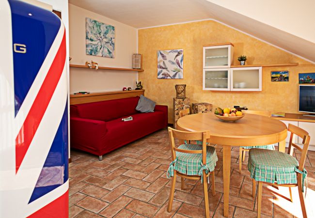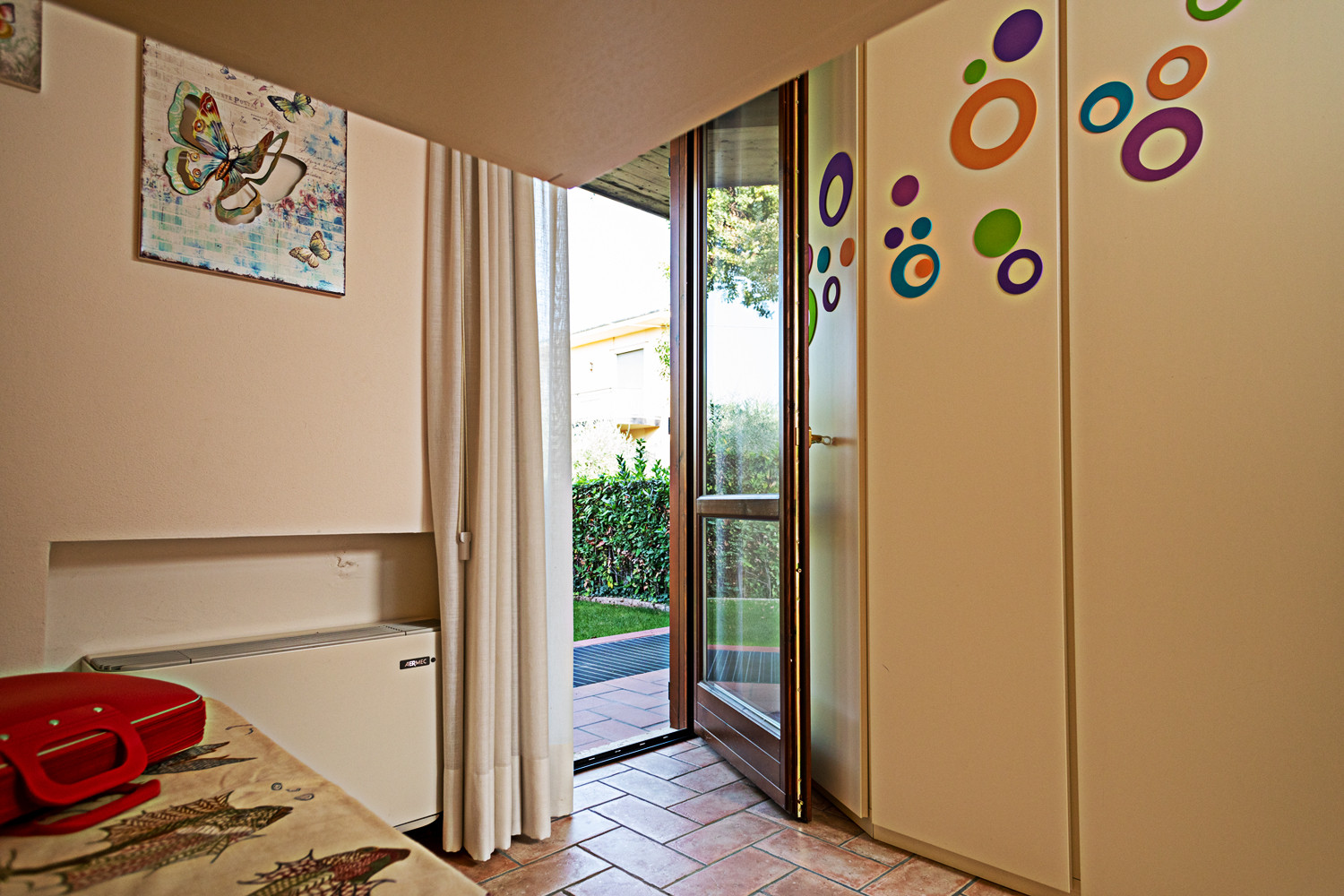 L'appartamento è dotato di un angolo cottura attrezzato con fornello a gas a quattro fuochi, forno a microonde, bollitore, tostapane, macchina da caffè tedesca, frigo con congelatore, tavolo con 4 sedie. TV satellitare e aria condizionata inclusi nel prezzo. La zona notte è composta da una spaziosa camera matrimoniale arredata in stile classico con grande guardaroba e cassettiera ed una graziosa cameretta con letto a castello e guardaroba. Entrambe le stanze da letto sono dotate di una porta-finestra che permette un affaccio diretto sul verde giardino. Bagno finestrato con cabina doccia, asciugacapelli e lavatrice a disposizione degli ospiti. Posto auto riservato in garage. Appartamento per non fumatori. Animali di piccola taglia ammessi su richiesta.