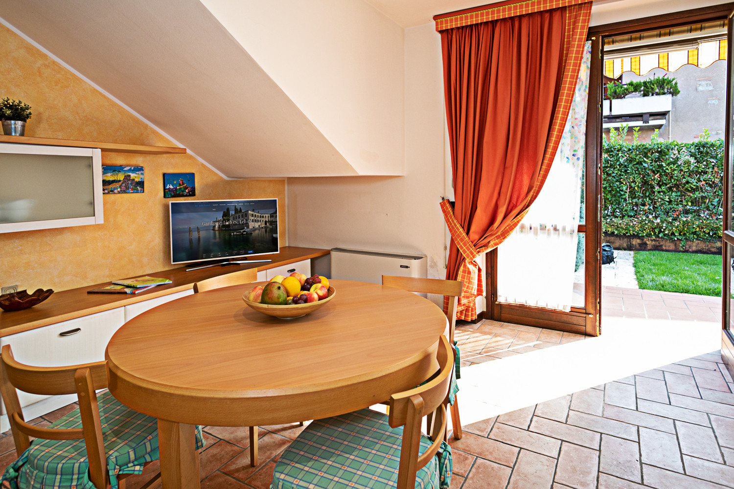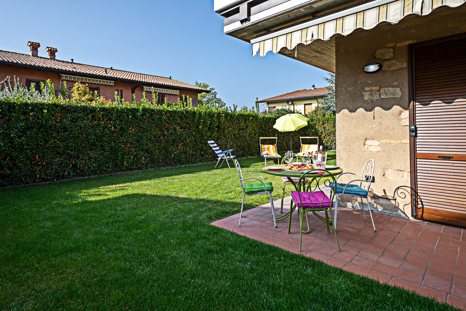 Il confortevole appartamento Iris di circa 65mq è situato al pian terreno di un tranquillo complesso residenziale offre un giardino privato su tre lati dotato di tenda da sole, tavolo e sedie dove potersi rilassare nelle calde giornate estive o al termine di una gita nei caratteristici paesini del Lago di Garda.