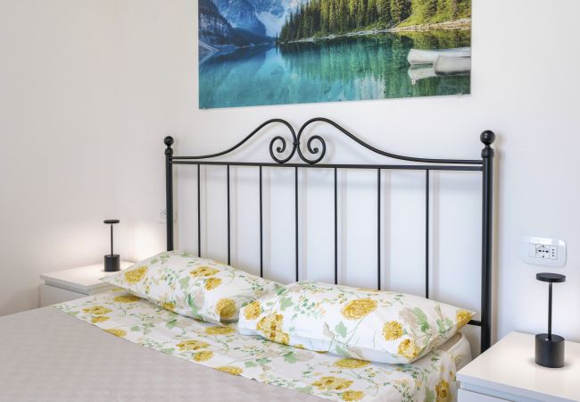 L’appartamento al secondo piano, collegato alla terrazza vista lago da solo una rampa di scale, dispone di un’accogliente zona giorno, arredata con zona relax in muratura con grandi cuscini, tv satellitare, poltrona letto singola. La cucina a vista è completamente attrezzata con lavastoviglie, frigo con freezer, piano ad induzione, forno a microonde, macchina del caffè all’americana, tostapane, bollitore. La calda zona notte con mobili in legno offre un letto matrimoniale, una cassettiera ed un moderno guardaroba a vista. Bagno con box doccia, wc, bidet. Wifi e aria condizionata a disposizione degli ospiti. Possibilità di parcheggio pubblico gratuito non custodito a 100 mt. Animali non ammessi. Appartamento per non fumatori.