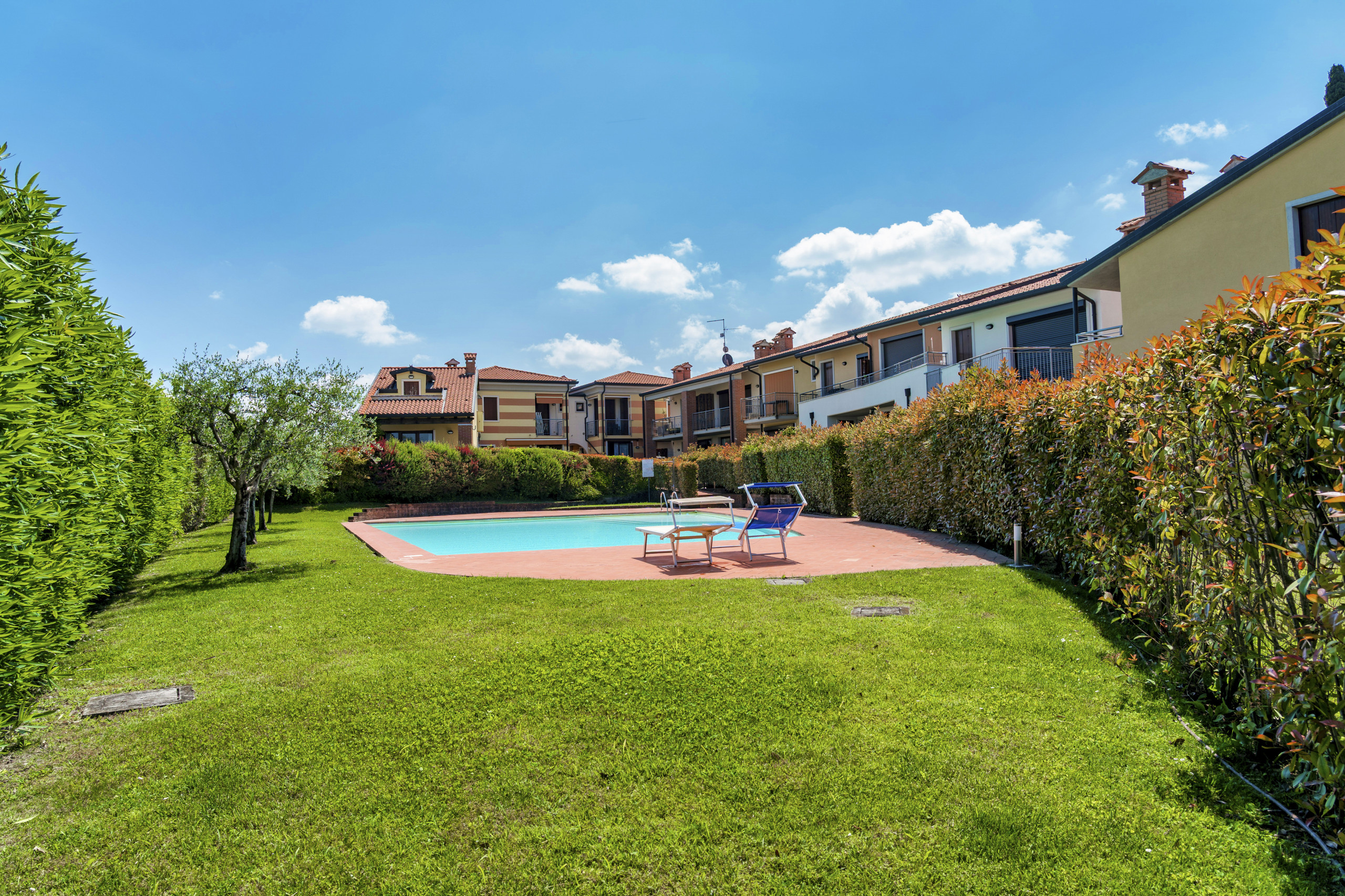 Skøn lejligheds komplet God stor pool, men egne ligge stole i lejligheden (tages med op inden udtjekning) mange lejligheder er ejet af italienere men en er ejet af en dansker udover det er der flere af dem som lejes ud. lejligheden vi var I var øverst oppe (nr2) Fin sovesofa i stuen 1 værelse med dobbelt seng 1 værelse med køjeseng vaskemaskine fungerende køkken får en lille velkomst pose med lidt salt, olie, opvaskemiddel,klude og sukker God ide at medbringe salt/peber selv God udsigt over poolen og søen 10/15minutters gang fra centrum (nemt at gå til) nem kommunikationen og nem indtjekning med kode til en nøgle boks. stille og rolige omgivelser , klart anbefalings værdi. vi har efterladt lidt vaskepulver til de næste gæster 😁
