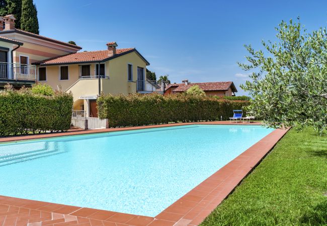 Elegante appartamento trilocale di circa 65 mq, situato a Lazise, a circa 1200 metri dal centro storico e dalla spiaggia.