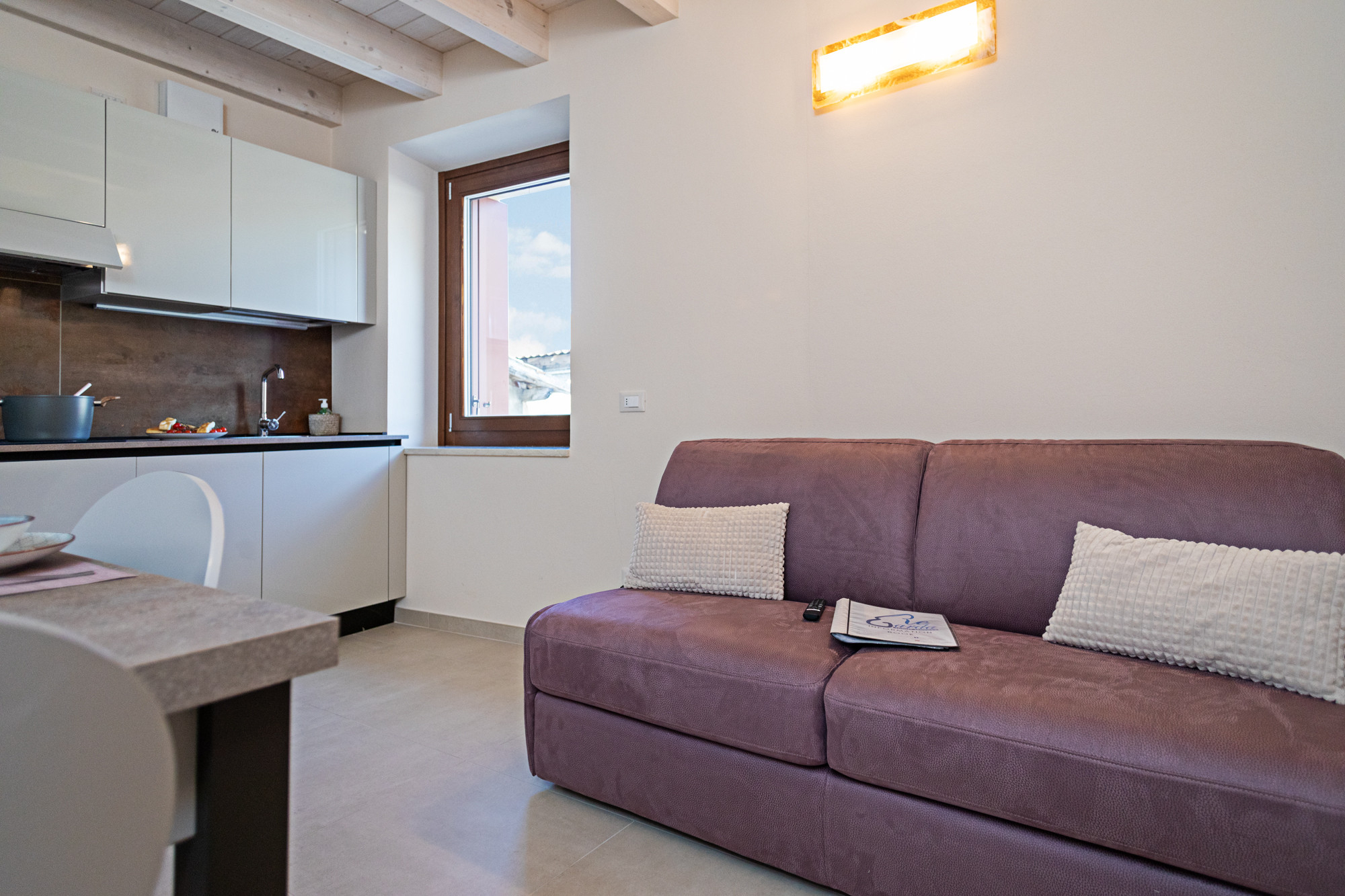 L'appartamento al primo piano si apre sulla moderna zona giorno, arredata con tavolo e sedie, divano letto (consigliato per un adulto o due bambini), TV satellitare. La cucina completamente attrezzata è dotata di lavastoviglie, frigorifero con congelatore, piano cottura a induzione, forno a microonde, macchina per il caffè, tostapane, bollitore. La confortevole zona notte offre un letto matrimoniale e un moderno armadio aperto. Bagno con box doccia, WC, bidet. Wifi gratuito e aria condizionata a disposizione degli ospiti. Possibilità di parcheggio pubblico gratuito a 100 metri di distanza. Animali domestici non ammessi. Appartamento per non fumatori. Possibilità di parcheggio pubblico gratuito a 100 metri di distanza.