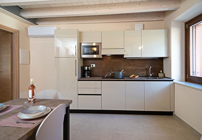 L'appartamento Apple è situato al primo piano all'interno del tranquillo complesso residenziale Vigneti del Garda, a circa 3 km da Lazise e dalla riva del lago, direttamente nel centro della frazione di Colà dove si trovano bar, alcuni ristoranti tipici, un piccolo supermercato e il Parco Termale del Garda. Il complesso residenziale dispone di una piscina per adulti con lettini, una piscina per bambini (date di apertura garantite dal 15.06 - 21.09 con orari esposti all'ingresso della piscina e presenza di bagnino), ping pong e un piccolo parco giochi. L'appartamento con due camere può ospitare 3 adulti o due adulti e due bambini e dispone di una camera da letto con balcone con vista, bagno con cabina doccia e lavatrice, zona soggiorno con divano-letto, TV satellitare, aria condizionata, wifi e una cucina attrezzata con lavastoviglie, frigorifero con congelatore, forno, macchina da caffè, tostapane. Terrazza arredata con tavolo e sedie per pasti all'aperto. Al piano terra, gli ospiti hanno accesso a un piccolo giardino privato con un'area di parcheggio semi-coperta per biciclette. Posto auto privato coperto all'interno del complesso. Piccoli animali ammessi con supplemento. Appartamento per non fumatori.