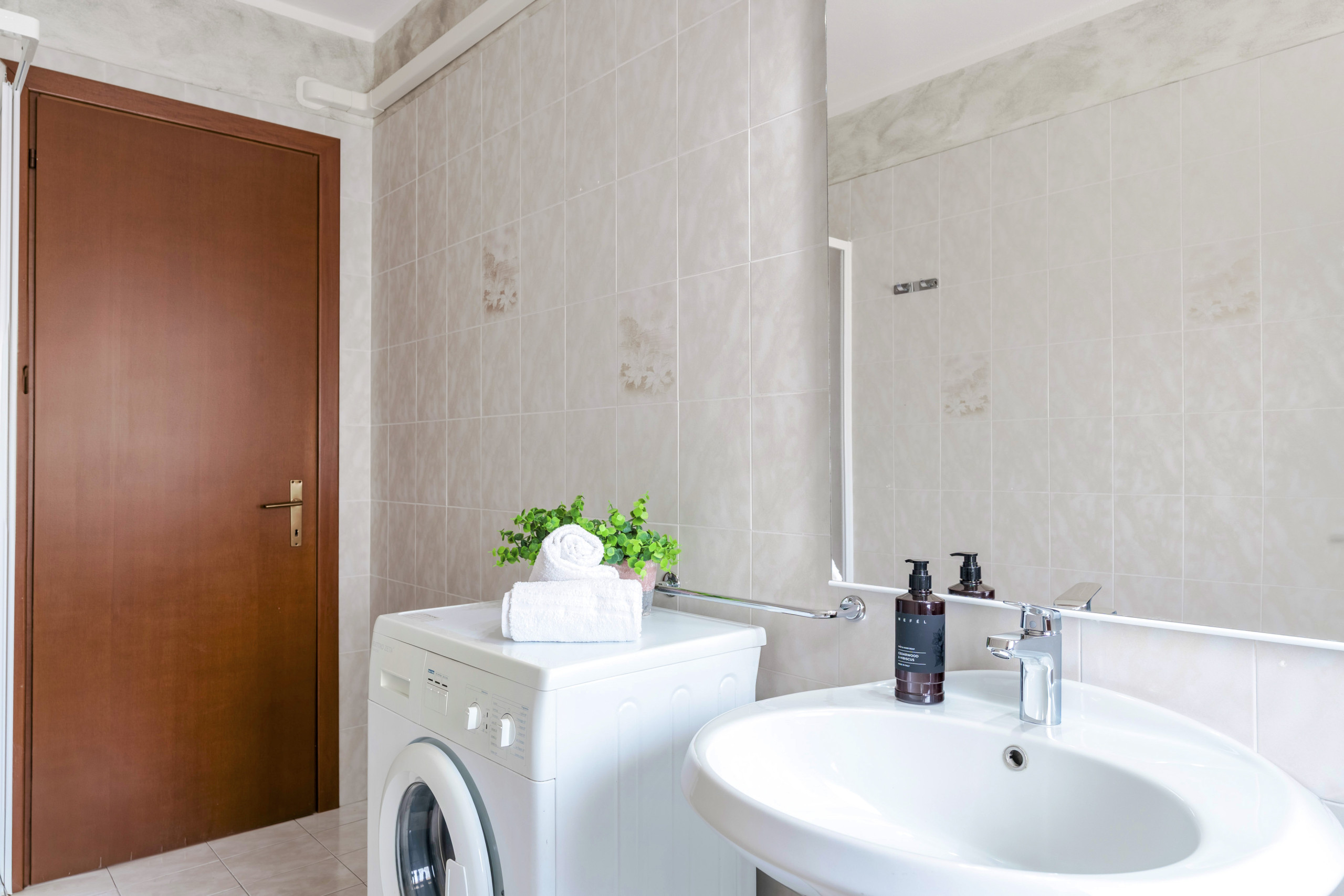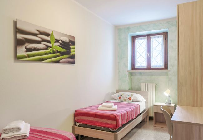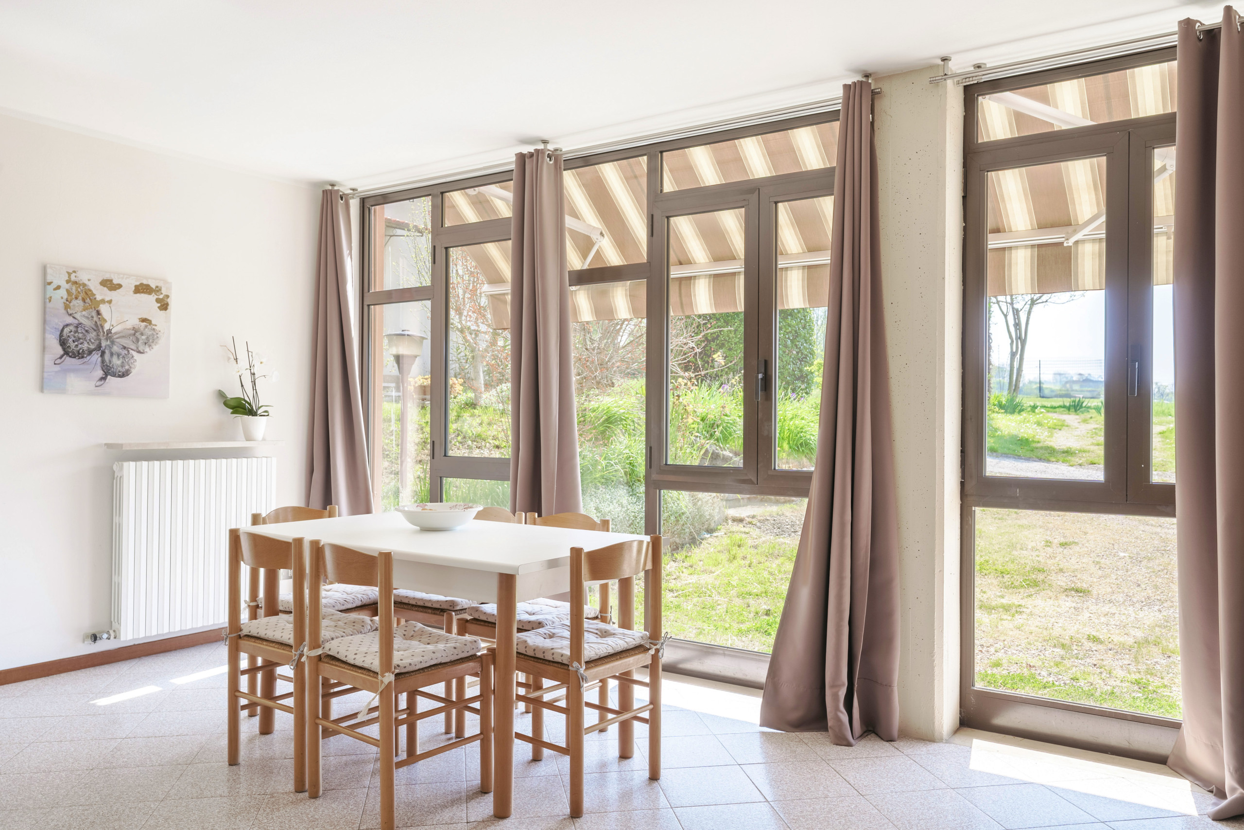 La camera matrimoniale dispone di un ampio spazio di manovra ai piedi del letto, cassaforte e di un grande guardaroba. La seconda camera è composta da un letto a castello (i letti misurano 80x190 cm) ed un letto estraibile oltre ad un guardaroba ed una libreria. Entrambe le camere affacciano sul portico con tenda da sole e l'ampio giardino posteriore. La zona giorno è composta da divano letto matrimoniale ed un'ampia cucina attrezzata con piano cottura a gas, frigorifero, congelatore, forno, tostapane, macchina da caffè americano e lavastoviglie. Aria condizionata e wifi a disposizione degli ospiti. La zona giorno affaccia su un secondo portico coperto con tenda da sole, barbecue/camino e secondo tavolo con sedie. Nel piano interrato accessibile atrtaverso uno scivolo è presente un posto auto in garage ed una cantina con lavatrice e parcheggio biciclette con possibilità di ricaricare le e-bike. Al piano terra, vicino all'ingresso del'appartamento, è presente un secondo posto auto scoperto privato. Animali non ammessi. E' vietato fumare in casa.