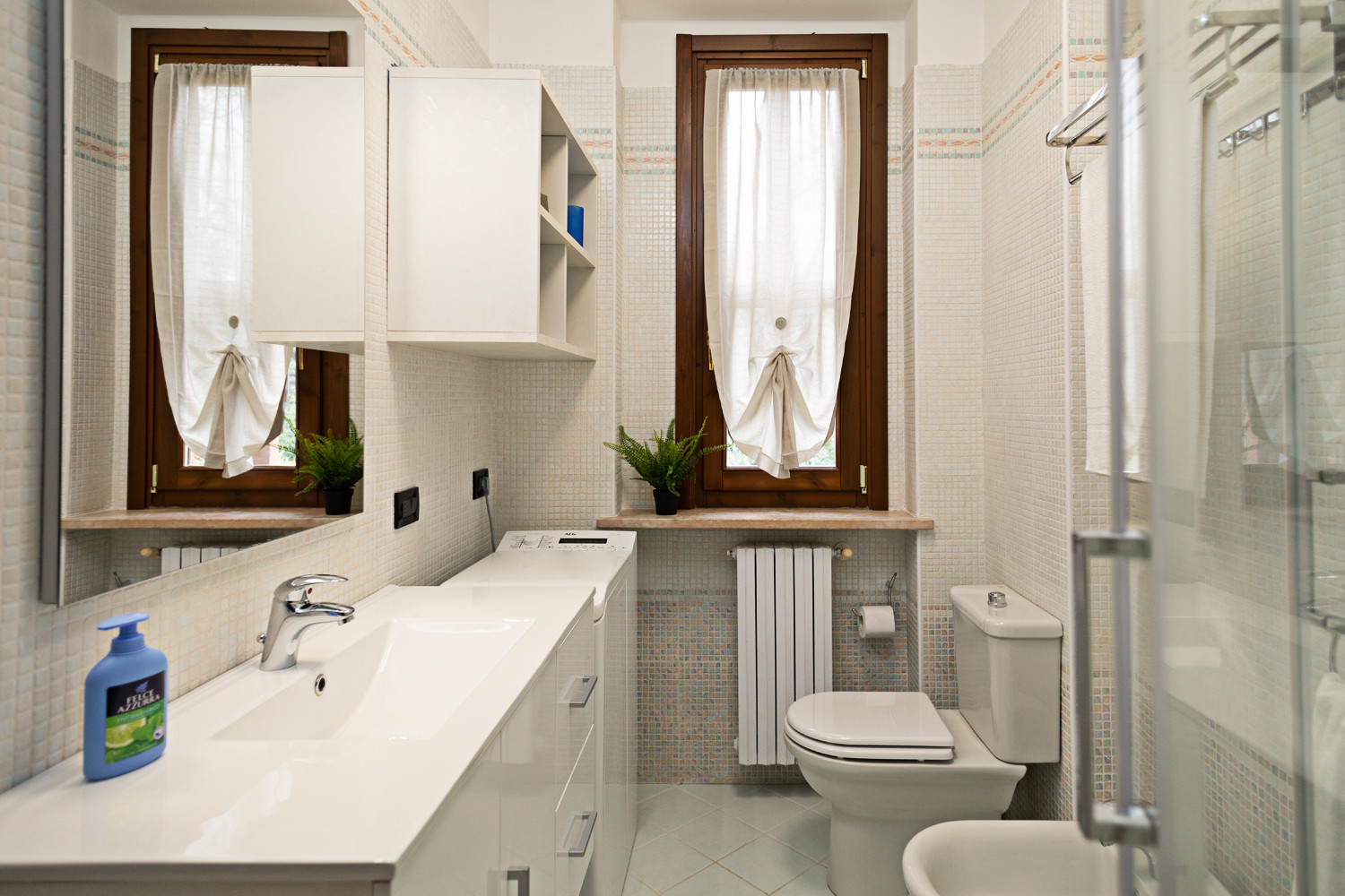 L'appartamento è dotato di un angolo cottura completamente attrezzato con piano ad induzione, forno a microonde, lavastoviglie, bollitore, tostapane, macchina da caffè tedesca, frigo con congelatore, piccolo piano in appoggio utilizzabile come tavolino per due persone. In soggiorno non è presente il tavolo, ma nelle giornate più fresche è possibile utilizzare il tavolo presente sul terrazzo anche all’interno dell’appartamento. Comodo divano letto (consigliato per un adulto o due bambini). TV satellitare, wifi e aria condizionata a disposizione degli ospiti. La zona notte è composta da una moderna camera matrimoniale con grande guardaroba ed un letto singolo a scomparsa. Bagno finestrato con cabina doccia, asciugacapelli e lavatrice a disposizione degli ospiti. Un comodo posto auto riservato in garage 205x235 cm. Appartamento per non fumatori. Animali non ammessi.