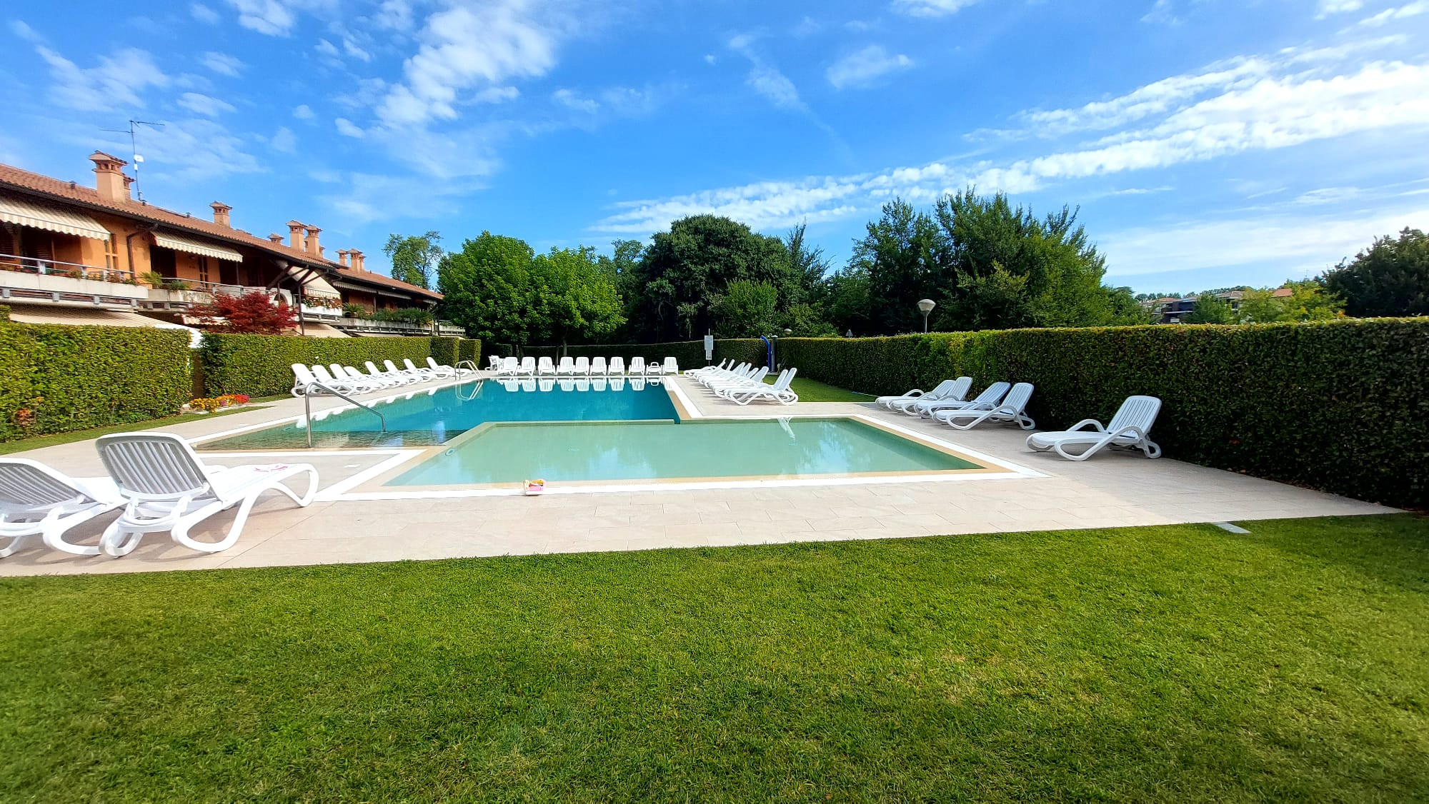 Grazioso appartamento bilocale situato presso il complesso residenziale Gardenia di Lazise, a circa 1.2 km dal centro di Lazise (15 minuti a piedi) e 1.5 km dalla spiaggia. L'intimo contesto residenziale di sole 8 unità, dispone di piscina (periodo di apertura garantito 15/05-30/09) ed ampia zona verde. L'appartamento completamente rinnovato, si apre su un’accogliente zona giorno con vista sulla piscina e sulla terrazza arredata con tavolo, sedie e tenda da sole. Il soggiorno dispone di angolo cottura con frigorifero, congelatore, forno, fornello a gas, lavastoviglie, tostapane, macchina da caffè americano e macchina da caffè a capsule. Angolo relax con tv satellitare, connessione wifi gratuita, aria condizionata e comodo divano letto matrimoniale. Moderno bagno con cabina doccia ed asciugacapelli a disposizione degli ospiti. Spazioso ripostiglio con spogliatoio e dispensa. La camera matrimoniale, con accesso diretto all’ombreggiato giardino posteriore arredato con ombrellone e sdraio, dispone di spazioso guardaroba e letto a baldacchino. Posto auto coperto in garage. Cantina con lavanderia e due biciclette a disposizione degli ospiti. Appartamento per non fumatori, animali domestici non ammessi. Consigliamo questo appartamento a coppie o famiglie che siano alla ricerca di un alloggio moderno, in un piccolo contesto comodo al centro storico di Lazise.