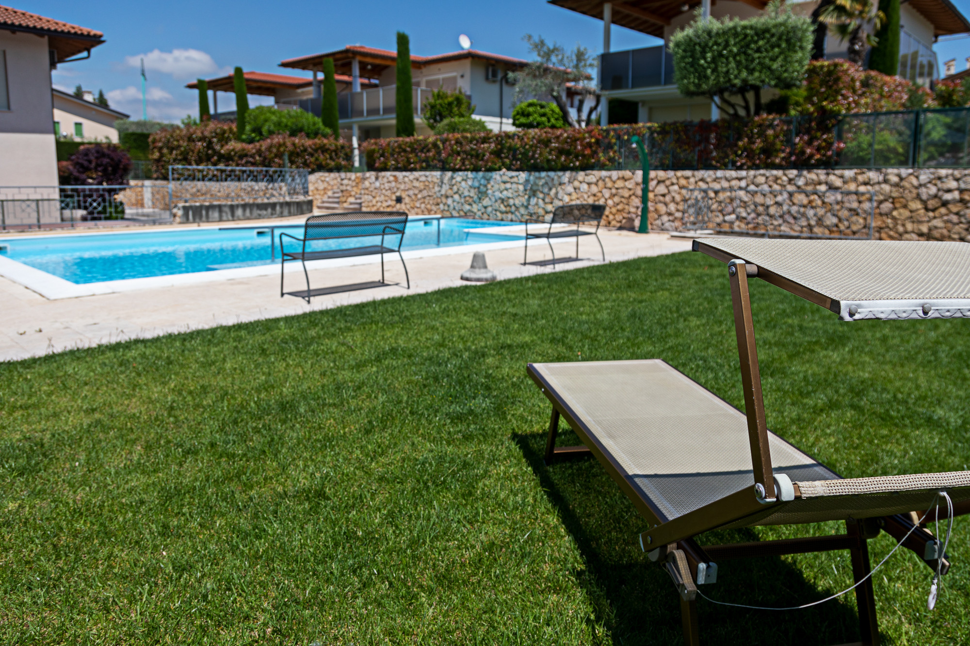 Grazioso appartamento bilocale situato presso il complesso residenziale Gardenia di Lazise, a circa 1.2 km dal centro di Lazise (15 minuti a piedi) e 1.5 km dalla spiaggia. L'intimo contesto residenziale di sole 8 unità, dispone di piscina (periodo di apertura garantito 15/05-30/09) ed ampia zona verde. L'appartamento completamente rinnovato, si apre su un’accogliente zona giorno con vista sulla piscina e sulla terrazza arredata con tavolo, sedie e tenda da sole. Il soggiorno dispone di angolo cottura con frigorifero, congelatore, forno, fornello a gas, lavastoviglie, tostapane, macchina da caffè americano e macchina da caffè a capsule. Angolo relax con tv satellitare, connessione wifi gratuita, aria condizionata e comodo divano letto matrimoniale. Moderno bagno con cabina doccia ed asciugacapelli a disposizione degli ospiti. Spazioso ripostiglio con spogliatoio e dispensa. La camera matrimoniale, con accesso diretto all’ombreggiato giardino posteriore arredato con ombrellone e sdraio, dispone di spazioso guardaroba e letto a baldacchino. Posto auto coperto in garage. Cantina con lavanderia e due biciclette a disposizione degli ospiti. Appartamento per non fumatori, animali domestici non ammessi. Consigliamo questo appartamento a coppie o famiglie che siano alla ricerca di un alloggio moderno, in un piccolo contesto comodo al centro storico di Lazise.