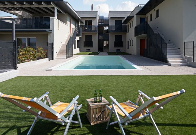 Spazioso appartamento trilocale di circa 65 metri quadrati, situato a Lazise, a circa 1500 metri dal centro storico e dalla spiaggia, nel complesso residenziale Miralago, con piscina e ampia zona solarium (apertura garantita dal 15/05 al 30/09). È disponibile un parcheggio pubblico per gli ospiti. L'appartamento al piano terra può ospitare da 4 a 6 persone ed è composto da un soggiorno con cucina attrezzata con frigorifero, piano cottura a gas, forno, macchina da caffè americano e tostapane, divano letto matrimoniale. Il soggiorno si affaccia su un bel giardino recintato adatto ad ospitare in sicurezza il vostro amico a quattro zampe. Ampia terrazza privata attrezzata con tenda da sole, tavolo e sedie per piacevoli pasti all’aperto. Bagno finestrato con lavatrice e box doccia, camera da letto matrimoniale con grande armadio e camera con letto a castello. Aria condizionata, TV satellitare e WiFi a disposizione degli ospiti. Gli animali domestici sono ammessi su richiesta. Non è consentito fumare all’interno dell’alloggio. Disponiamo di un secondo appartamento al piano primo con vista lago.