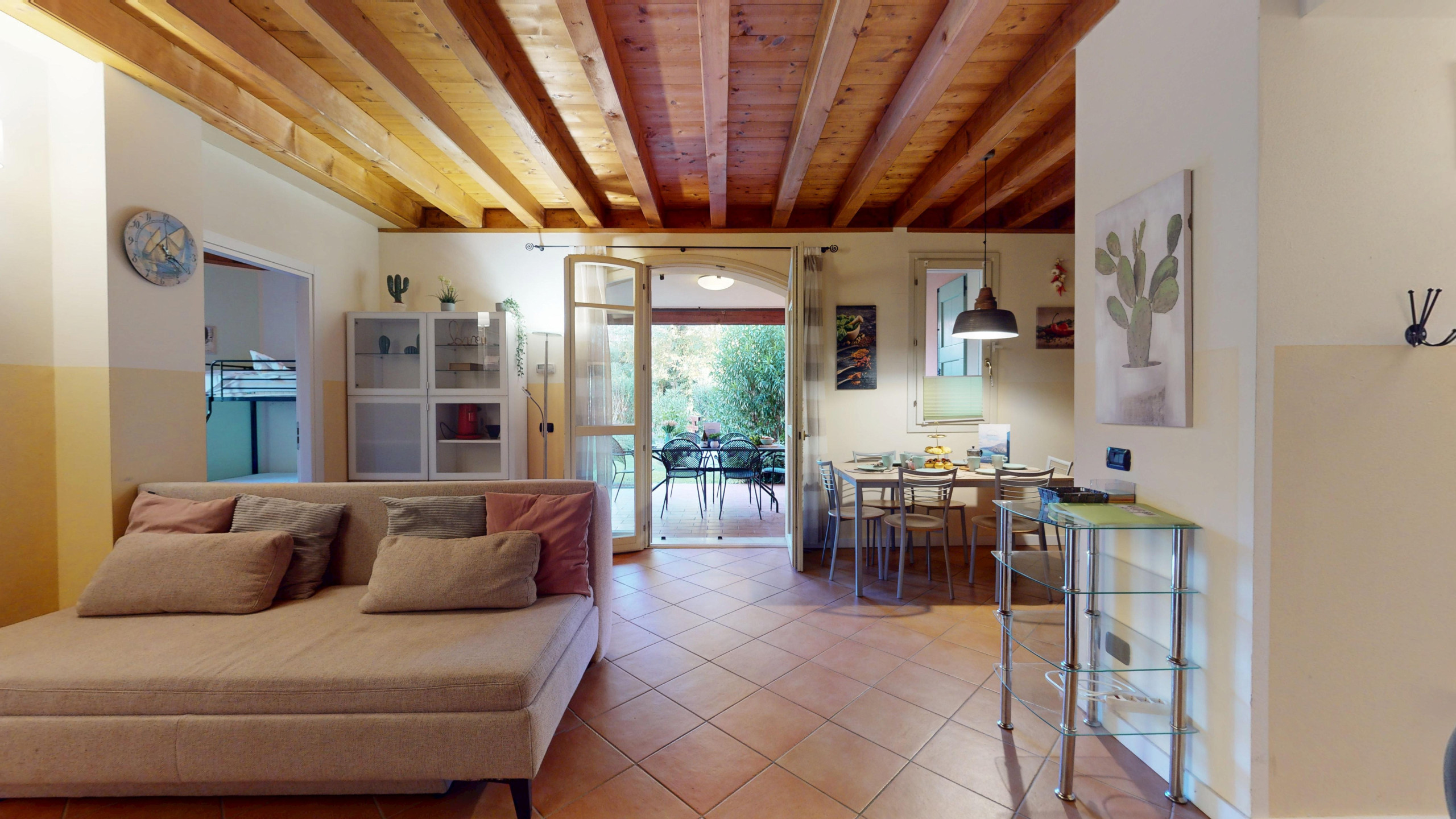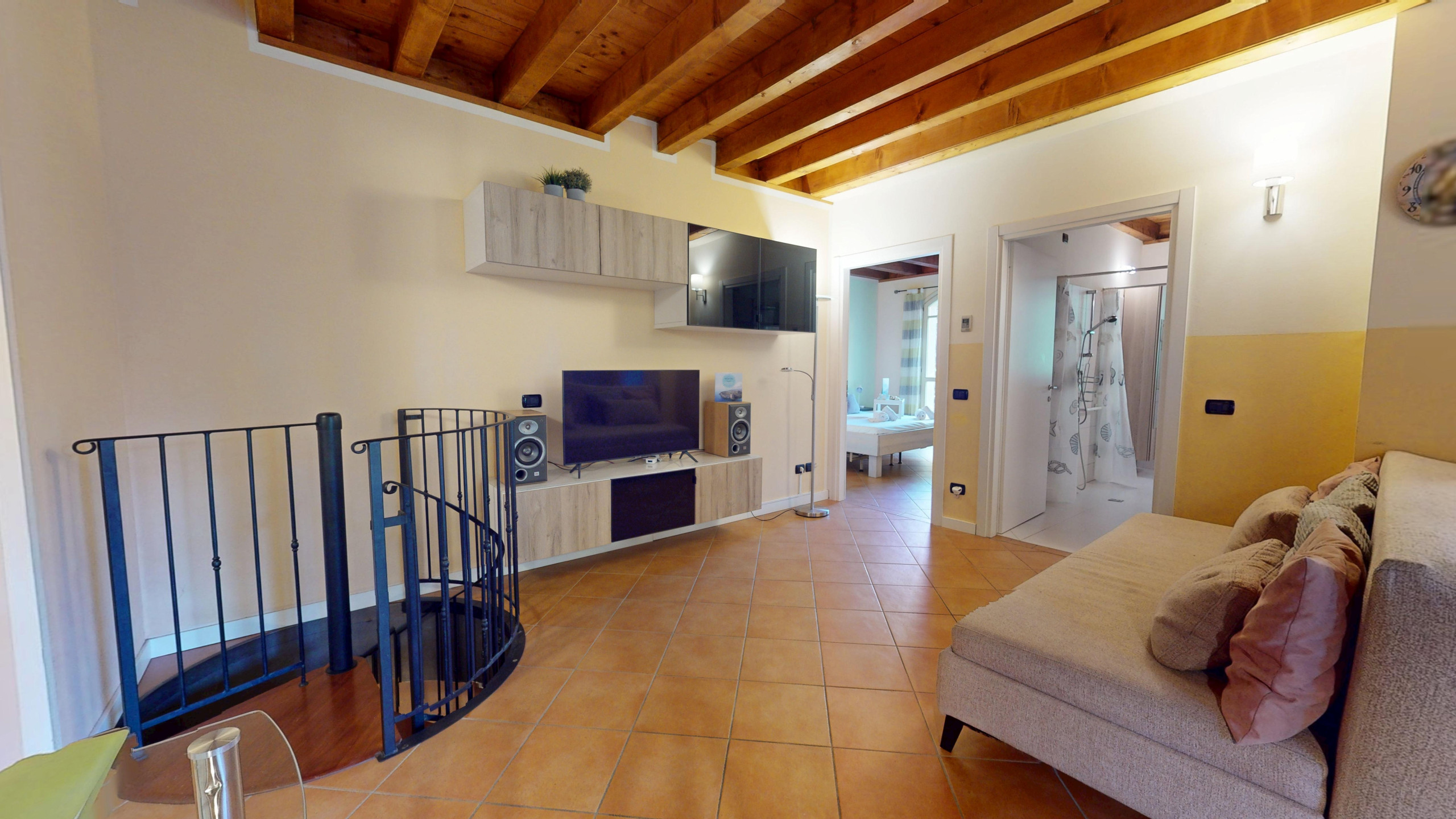 Questo spazioso appartamento offre un'accogliente sistemazione con 2 camere da letto. La struttura include un letto matrimoniale, un letto a castello e due divani letto, garantendo flessibilità e comfort per tutti gli ospiti. L'appartamento è dotato di 2 bagni con doccia, rendendo la permanenza pratica e piacevole.