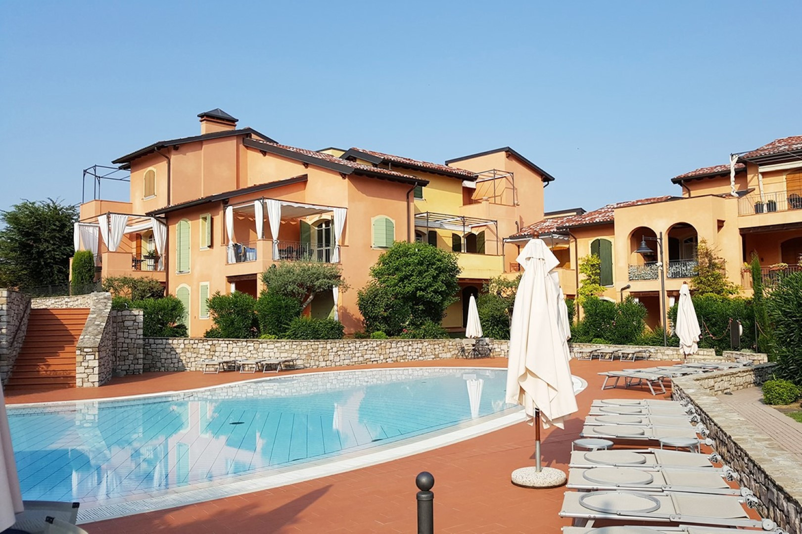 L'appartamento dispone di un comodo posto auto esterno e offre viste mozzafiato sul giardino, sulla piscina e sul lago. Gli ospiti potranno inoltre usufruire di un'area tennis e di uno spazio dedicato ai bambini, rendendo il soggiorno piacevole per tutti i componenti della famiglia.