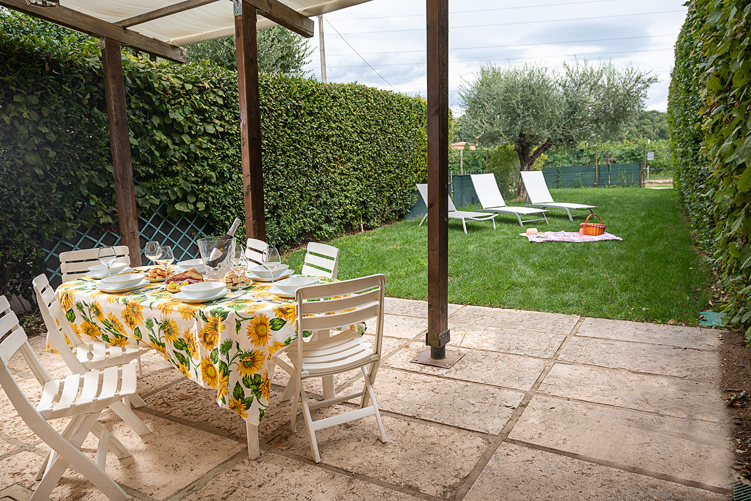 Tipica casa di corte semi indipendente situata a Lazise nel verde di vigneti ed olivi, a circa 5 km dal centro storico e dal lago.
