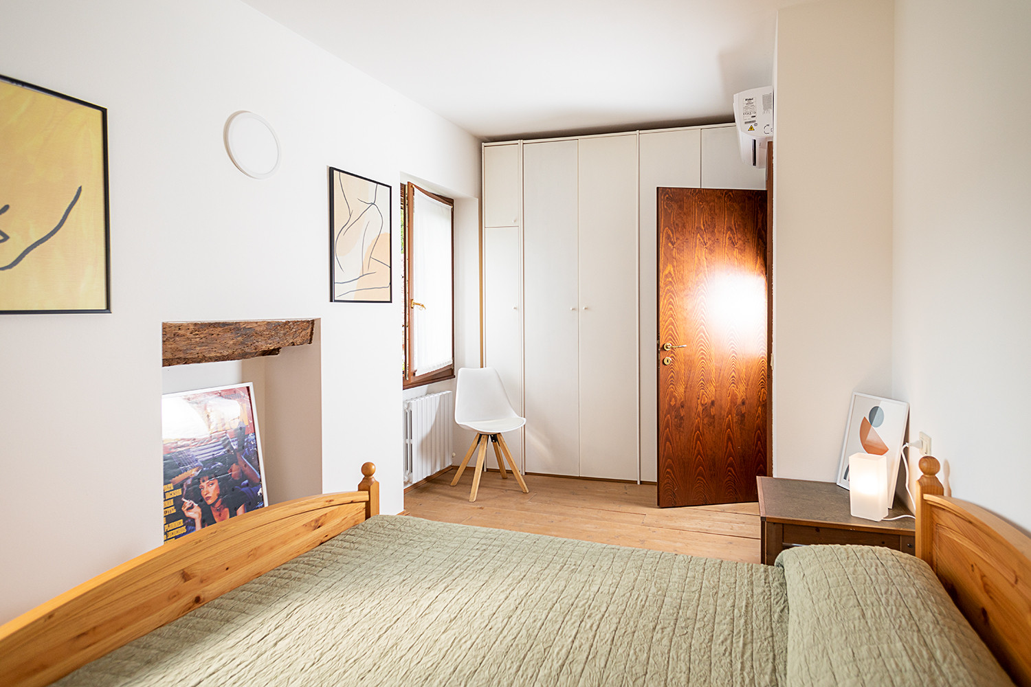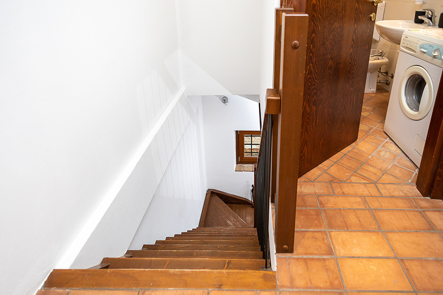 Al piano primo sono collocate le due camere da letto matrimoniali dotate di guardaroba e finestre con vista sul giardino ed un bagno finestrato con cabina doccia e comodo asciugacapelli. I soffitti caratteristici con travi a vista rendono l’ambiente caldo ed accogliente. L’appartamento si affaccia sul verde dei vigneti e delle colline gardesane offrendo un’incantevole vista. Il rustico dispone di due posti auto scoperti riservati situati nella corte adiacente all’abitazione.