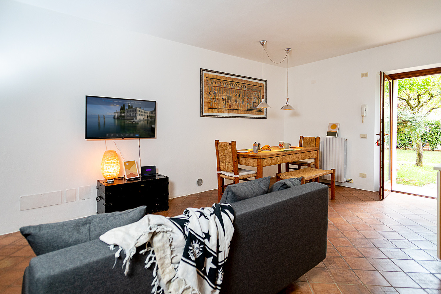 L’appartamento affaccia sui vigneti e sulle colline gardesane offrendo un’incantevole vista. Il rustico dispone di due posti auto scoperti riservati situati nella corte adiacente all’abitazione. Wifi a disposizione degli ospiti. Animali domestici di piccola taglia ammessi su richiesta. Appartamento per non fumatori.