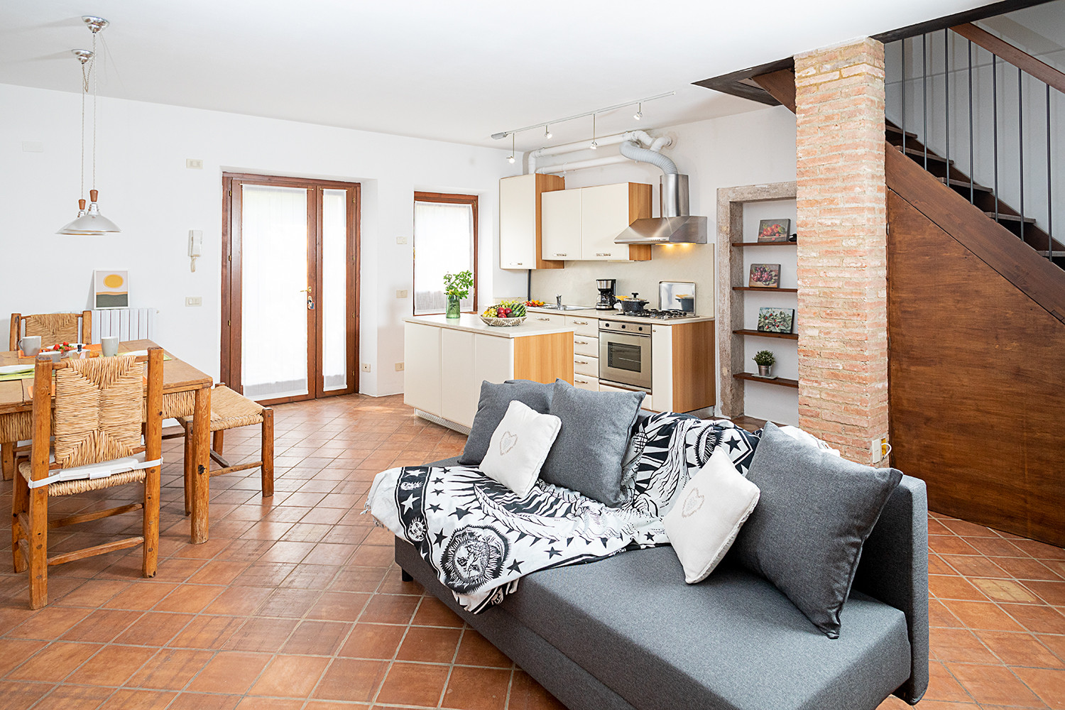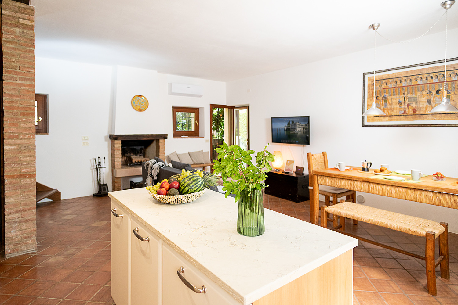 Il Countryhouse "Nocino 1" può ospitare fino a 6 persone ed è sviluppato su due piani con una graziosa terrazza esterna ben curata, dove potersi godere piacevoli cene e pranzi all’aperto. Al piano terra è presente un'ampia zona giorno con angolo cottura attrezzato con frigorifero e freezer, fornello a gas a 4 fuochi, forno, lavastoviglie, tostapane e macchina da caffè all’americana, tavolo da pranzo con sedie. Il luminoso soggiorno è arricchito da un tipico camino in pietra, un divano letto matrimoniale e una tv satellitare.