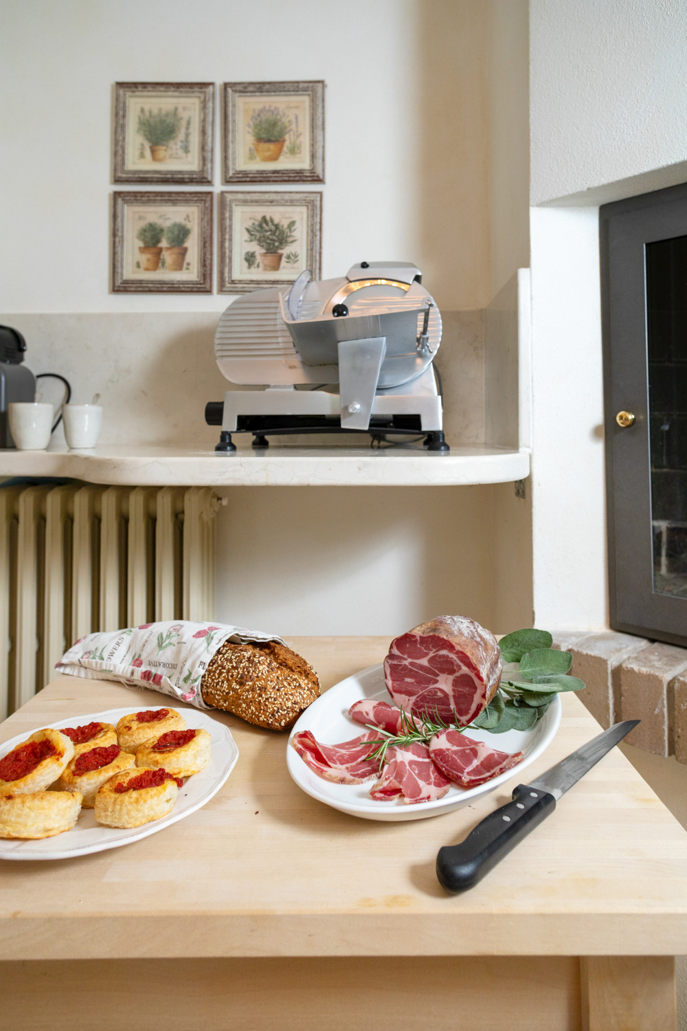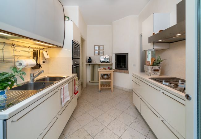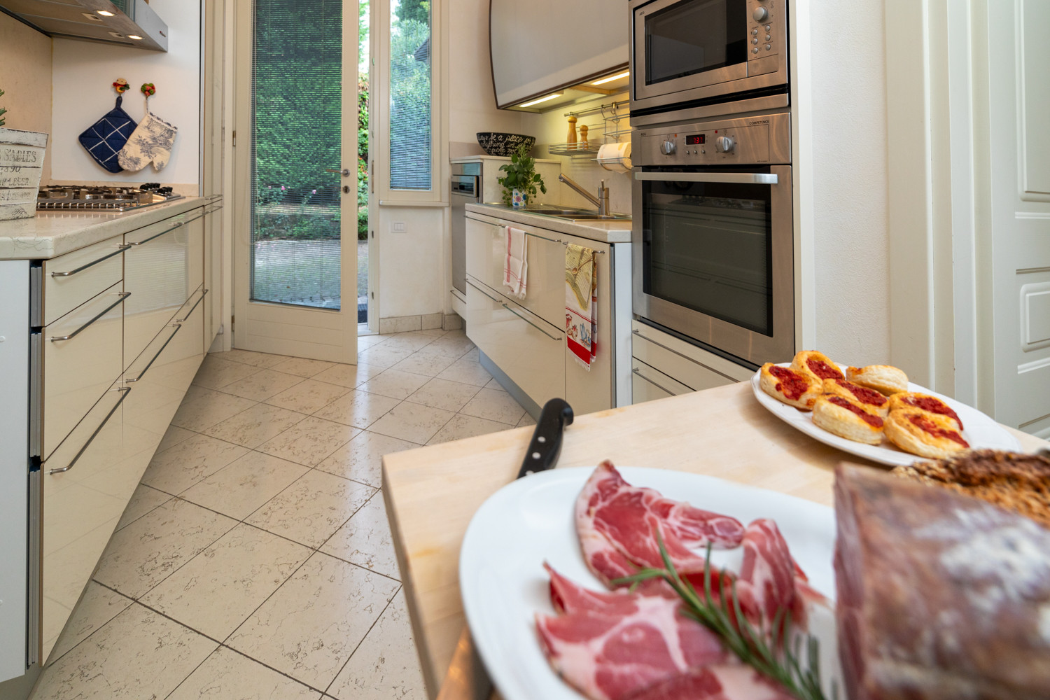 La villa dispone di una cucina completamente attrezzata con lavastoviglie, fornello a gas a 5 fuochi, affettatrice, frigo e freezer, forno e forno a microonde, caffettiera all’americana e macchina del caffè Nespresso a capsule.