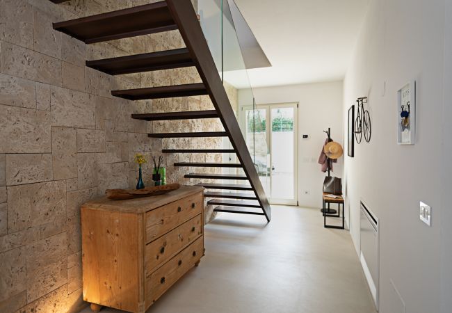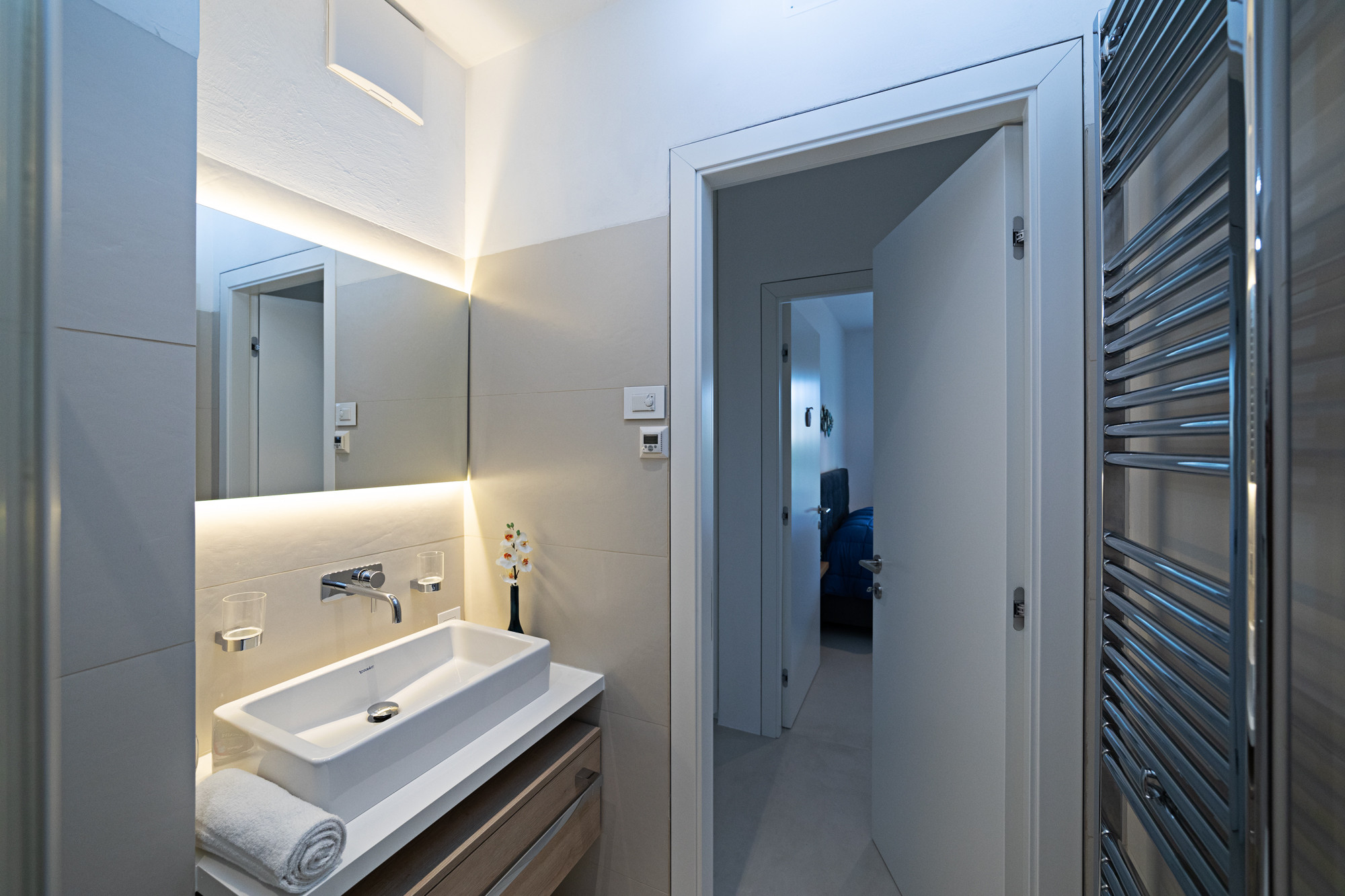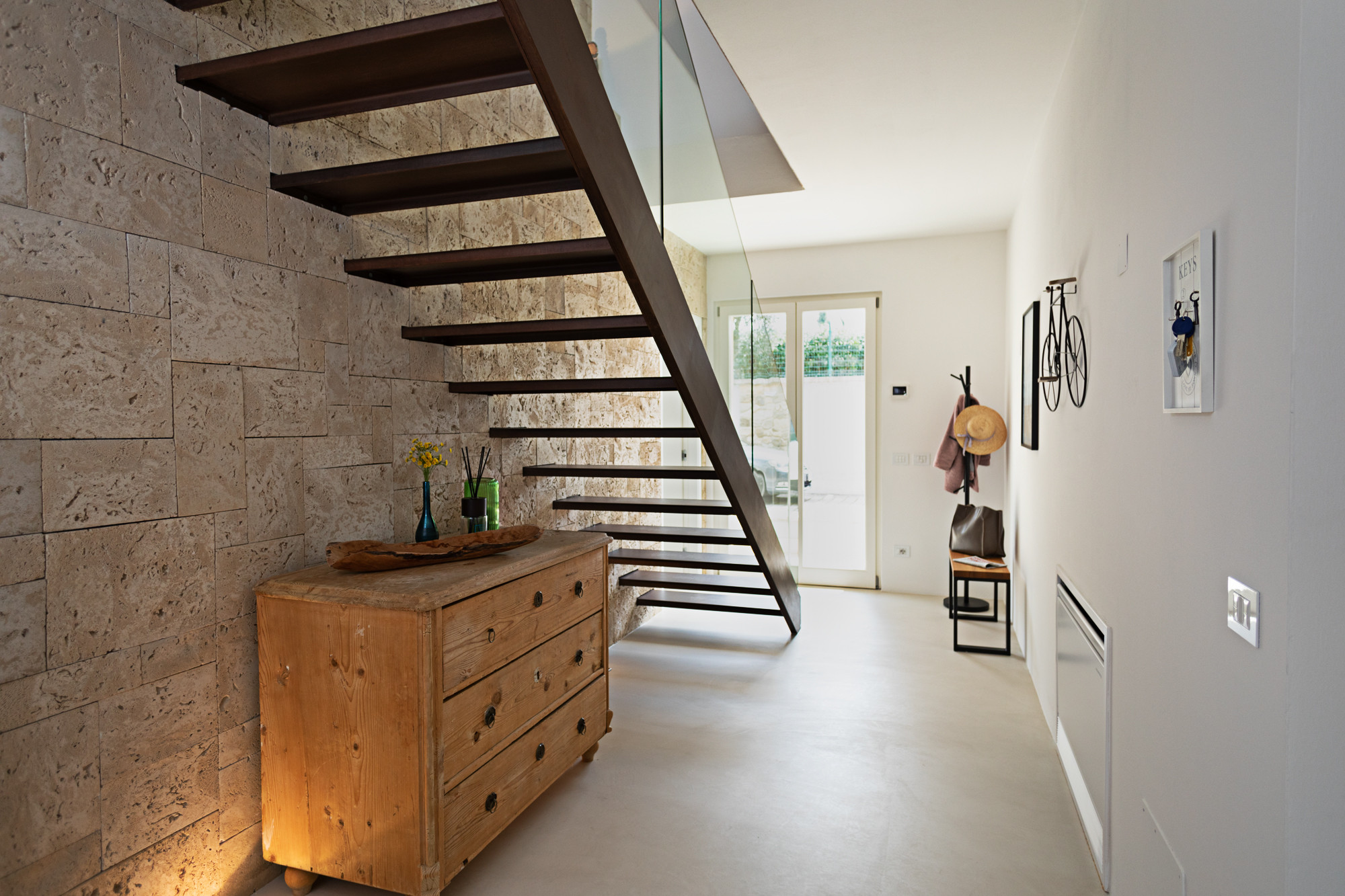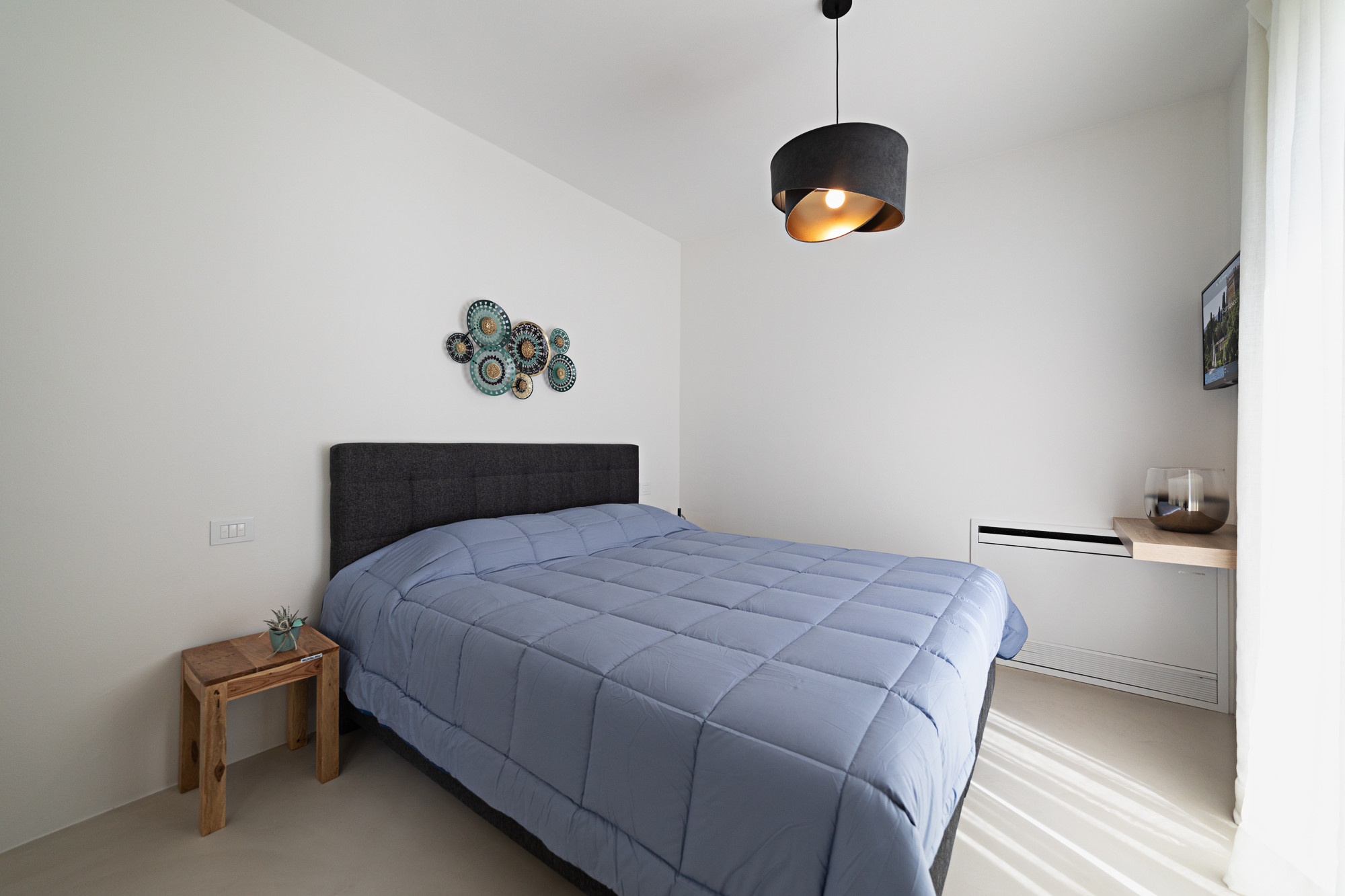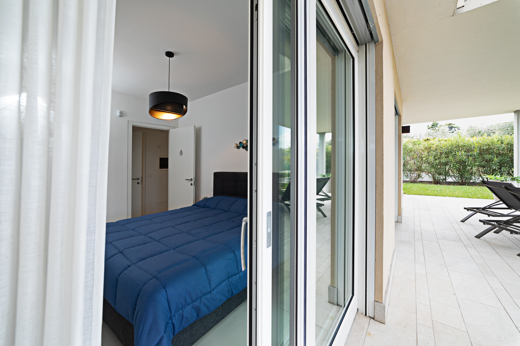 Gli interni di Villa Julia, che si estendono su circa 120 mq, sono caratterizzati da arredi accuratamente progettati che aggiungono modernità e fascino alle stanze. Situata al piano terra, l'area notte è composta da tre camere da letto matrimoniali, due delle quali con armadi e TV (no Sat), mentre la suite padronale, affacciata sulla terrazza coperta e sul giardino, dispone di TV (no Sat), un armadio a vista e un bagno en-suite privato con ampia doccia a filo pavimento e doppio lavabo. Un secondo bagno con box doccia completa il piano terra. Tutte le stanze sono dotate di zanzariere per garantire il massimo comfort.