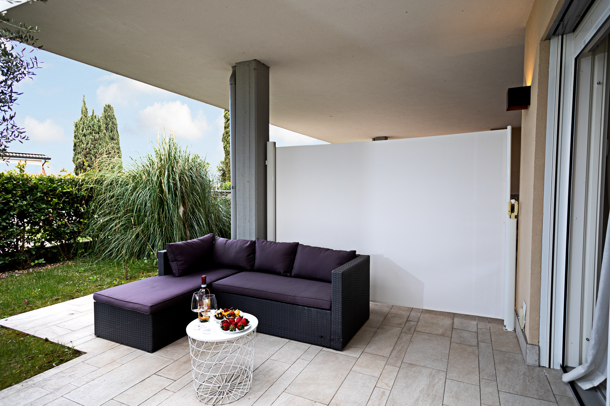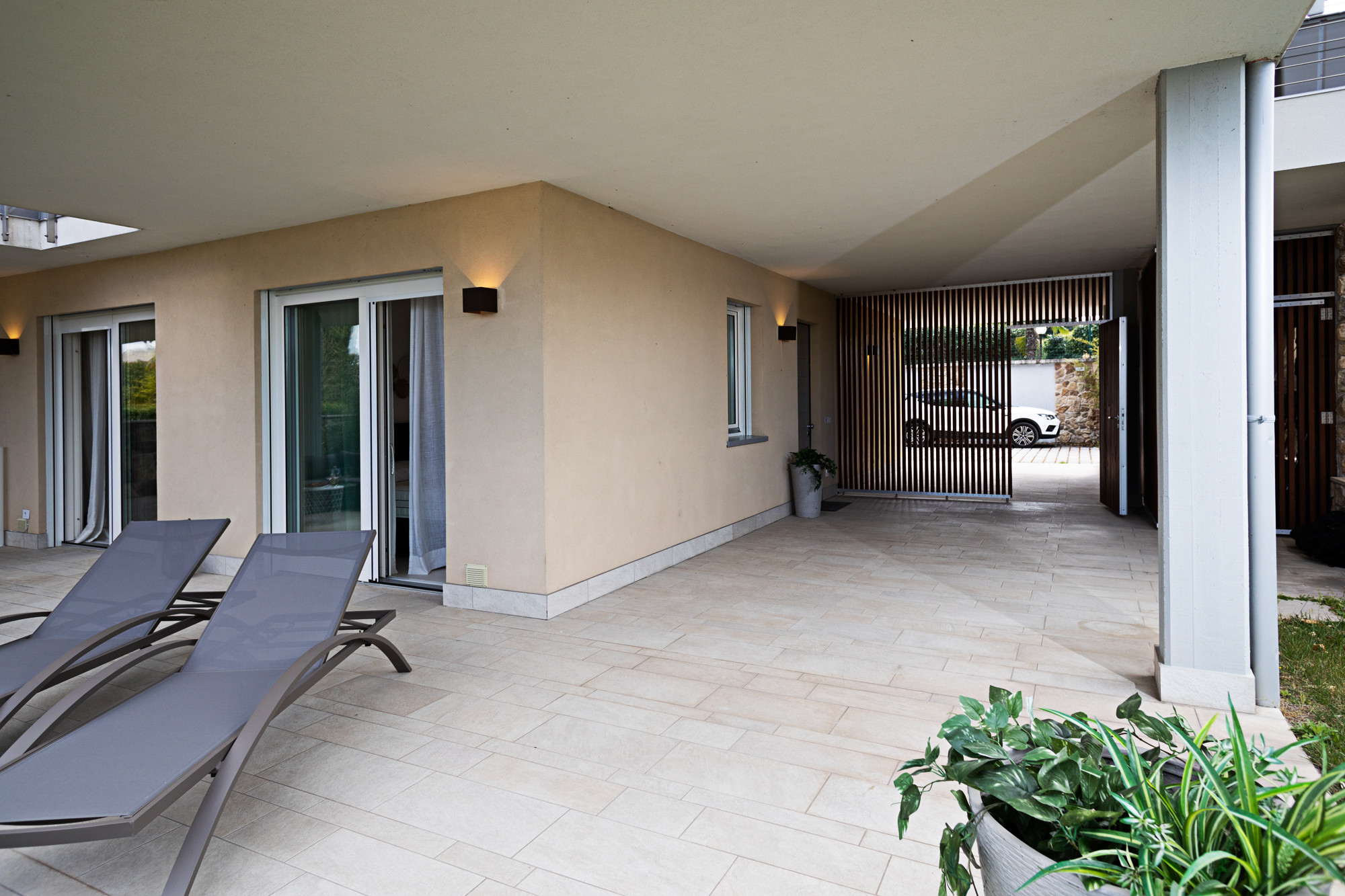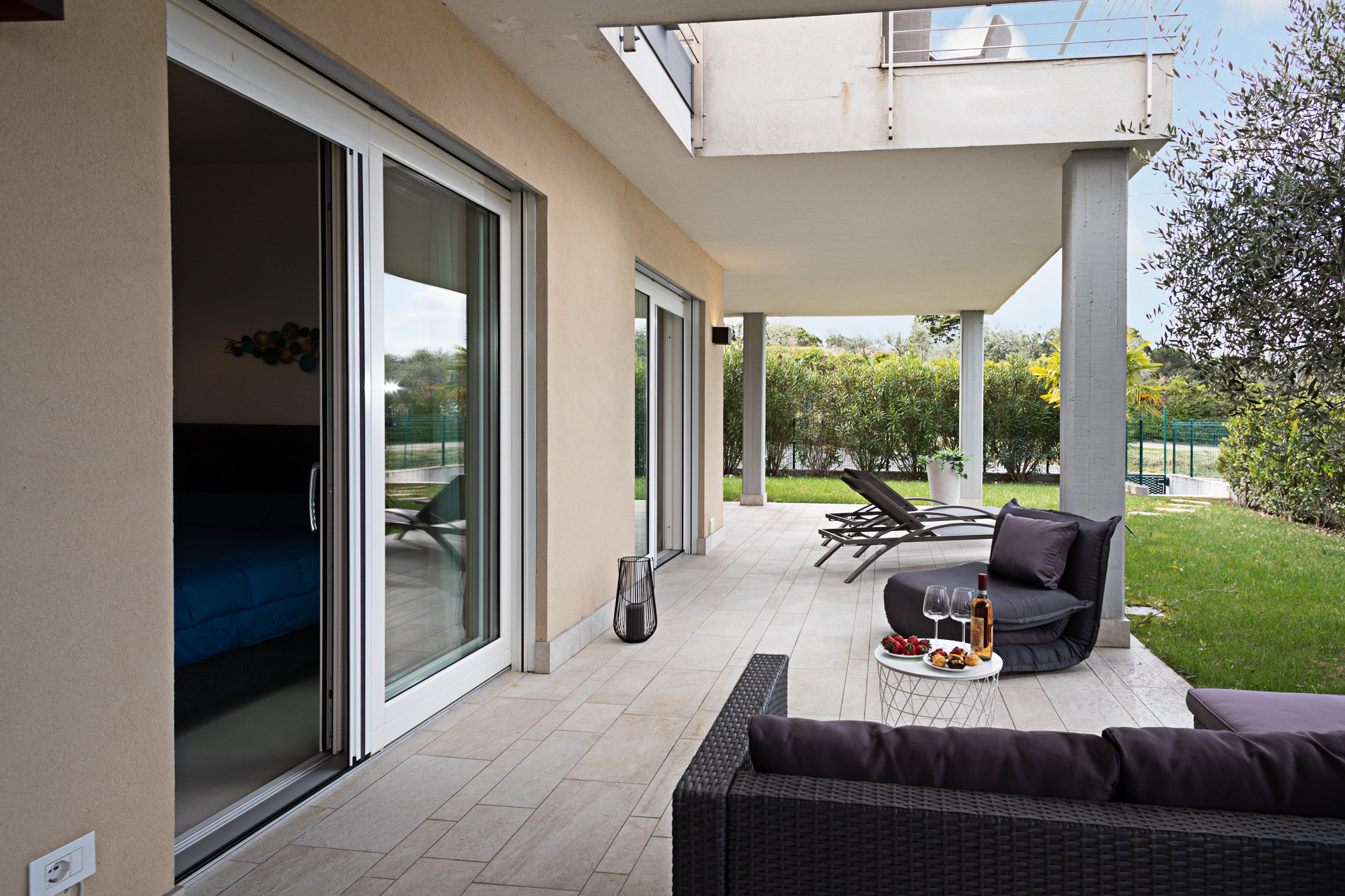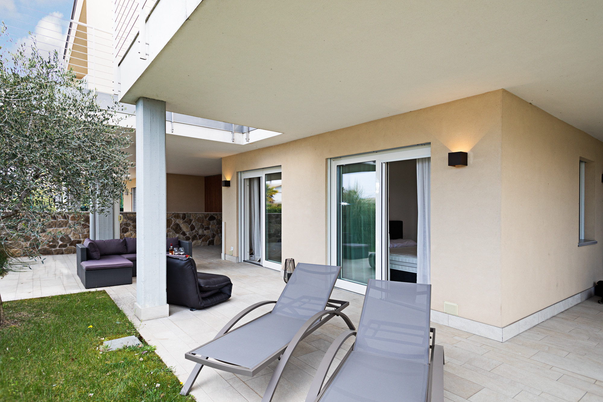 Il giardino di Villa Julia, che si estende su due lati, offre l'accesso diretto alla piscina condivisa (periodo di apertura garantito 01/05-30/09), con un'area solarium pratica. Nel giardino e sulla spaziosa veranda coperta ci sono due lettini e un'area lounge confortevole per rilassarsi nelle ore più calde.