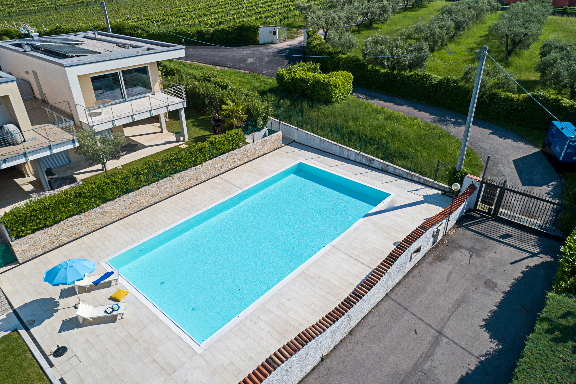 Ampia villa bifamiliare con piscina privata (periodo di apertura garantito 15/05-04/10) e giardino su tre lati situata a Lazise ad 1 km dal centro storico (15 minuti a piedi), situata in una delle più ricercate e tranquille zone residenziali del paese.