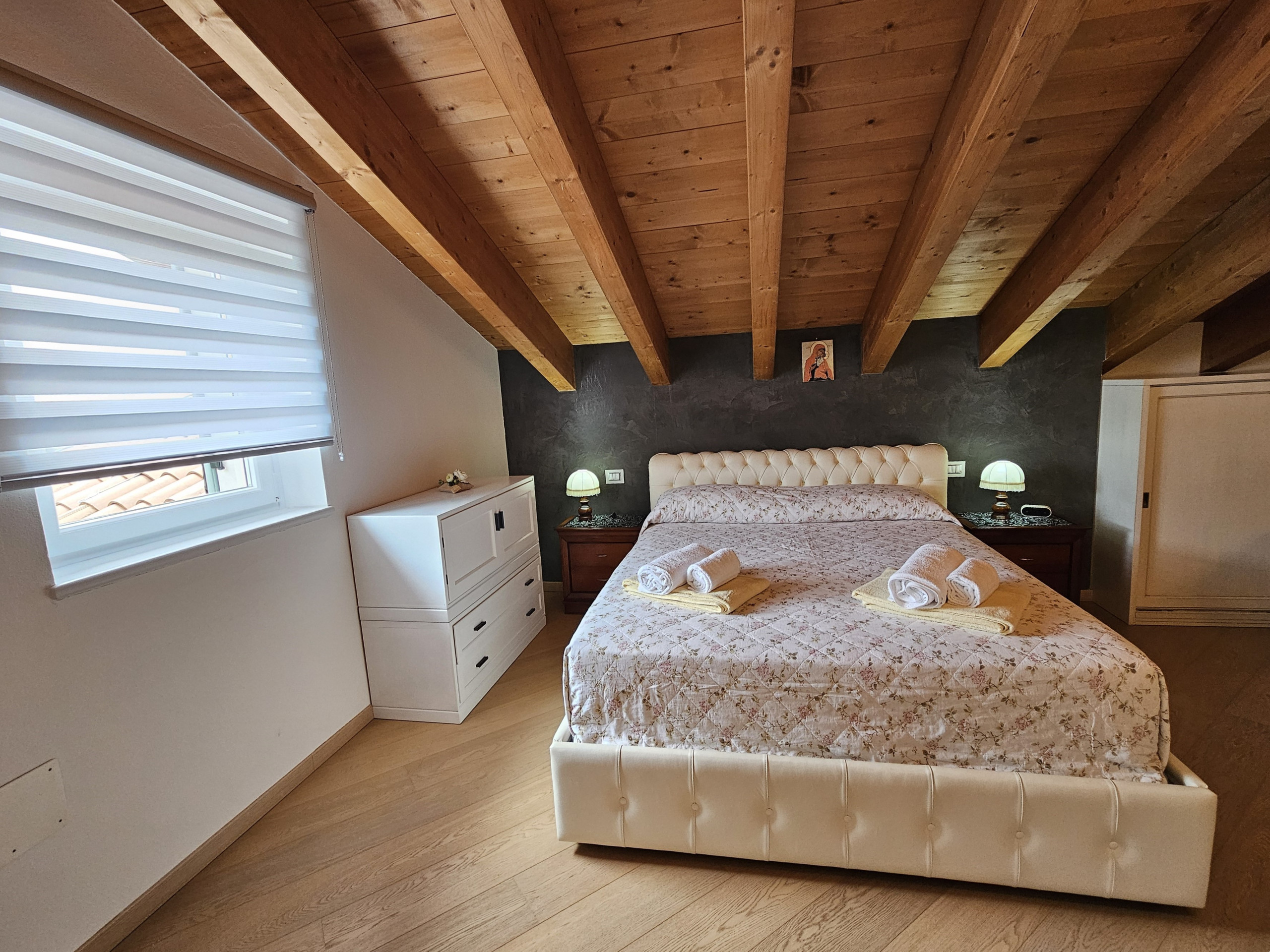 Al piano superiore di Villa Love si trovano due eleganti camere da letto matrimoniali con travi a vista dotate di climatizzazione individuale e tv sat. La camera padronale finestrata dispone di letto matrimoniale, guardaroba, cassettiera, zona relax con poltrona, è completa di un ampio bagno con vasca. La seconda camera da letto è stata rinnovata nel 2024 e sono stati aggiunti due lucernari elettrici, è arredata con un letto matrimoniale, letto singolo con letto estraibile accostabile, guardaroba e cassettiera e offre anch’essa un bagno interno con cabina doccia. Wifi e lavatrice a disposizione degli ospiti.