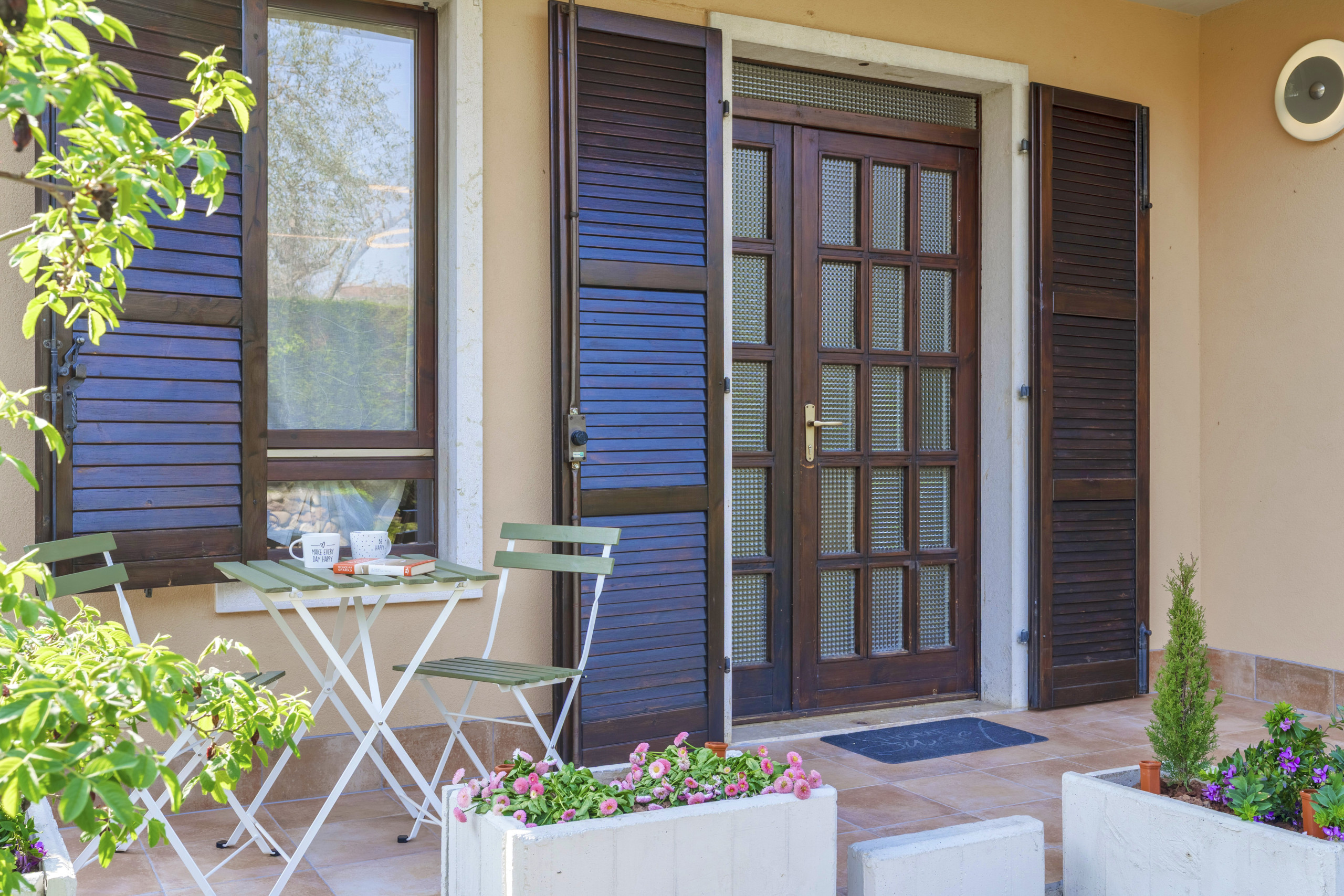 Von der Terrasse aus, die mit Tisch und Stühlen ausgestattet ist, kann man einen herrlichen Blick auf den See mit beeindruckenden Sonnenuntergängen und den Blick auf das Schwimmbad für Erwachsene und Kinder genießen (Öffnungszeitraum garantiert vom 01.06. bis 30.09.), inklusive Liegestühlen.