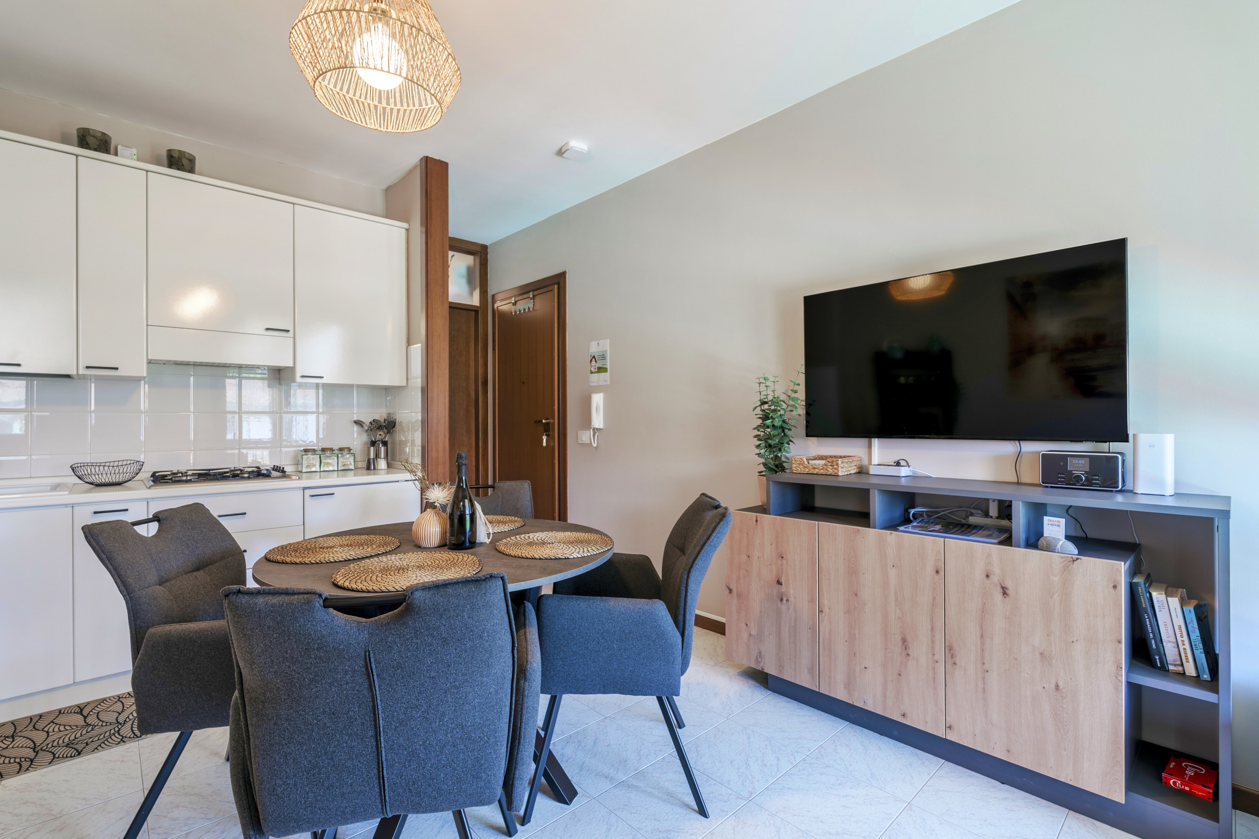 Fantastic time in Italy staying at the Bon bon 2 apartment. Spacious and amazingly clean and well maintained. Our family comprised two kids 15 and 13, and the master bedroom came with a double bed and single bed which provided good space for the family in addition to the sofa bed. The apartment was located about 15mins from Lazise centre but was a nice stroll down to the centre. Car park is provided and the service company could not have been more helpful in making our stay comfortable.