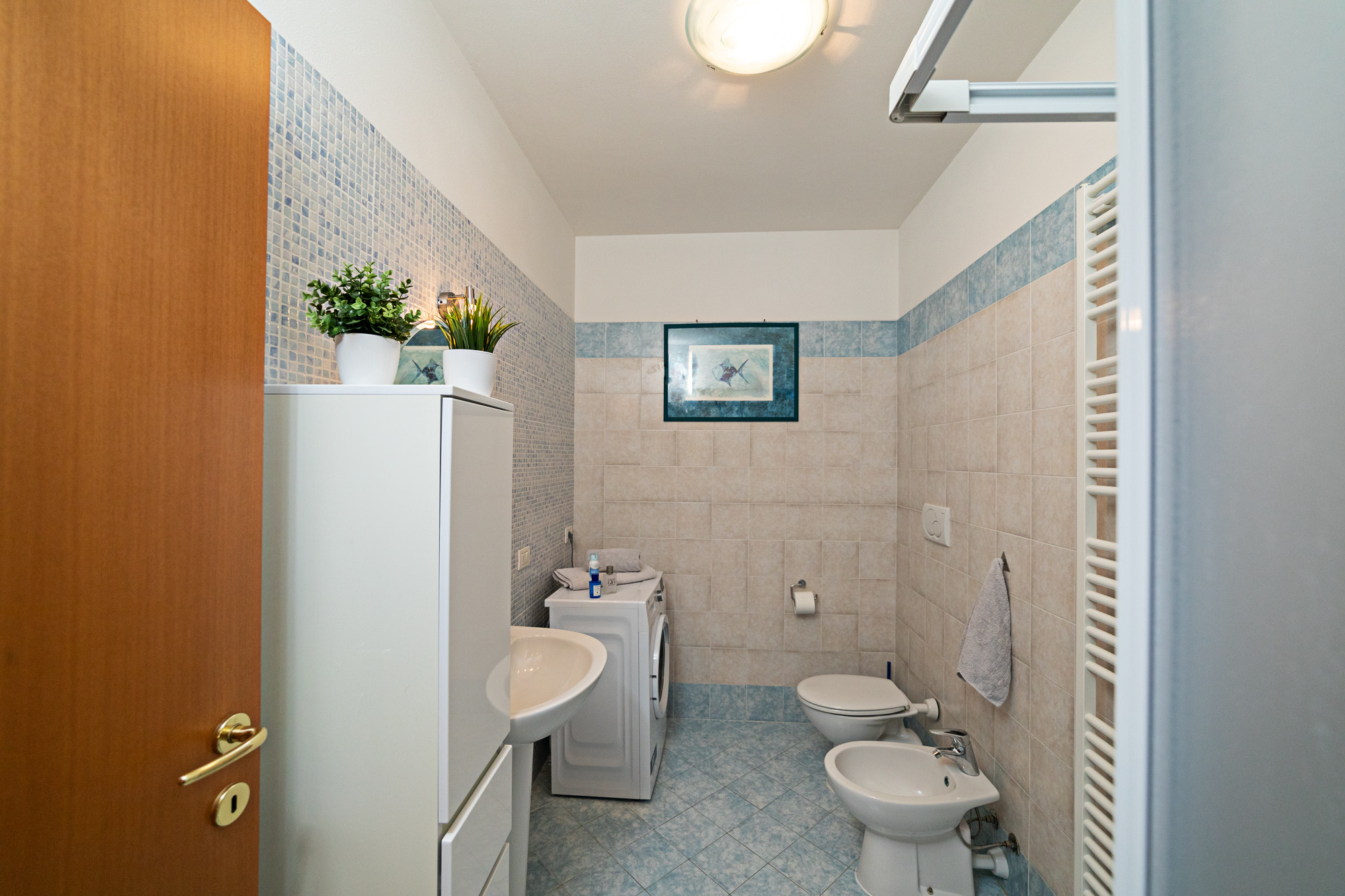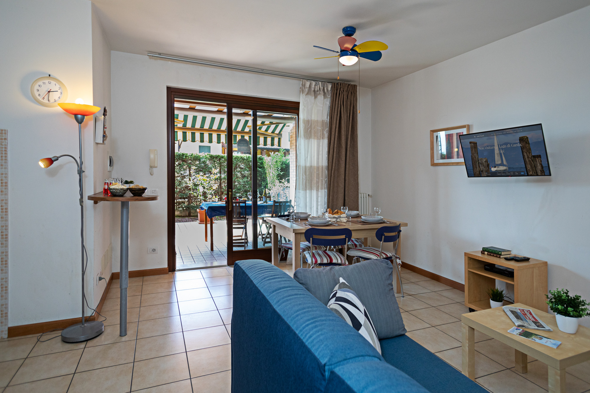 Charmante Zwei-Zimmer-Wohnung, die sich im Wohnkomplex Gardenia in Lazise befindet, etwa 1,2 km vom Zentrum von Lazise (15 Gehminuten) und 1,5 km vom Strand entfernt. Der intime Wohnkomplex mit nur 8 Einheiten verfügt über einen Swimmingpool (Öffnungszeit garantiert vom 15.05.-30.09.) und eine große Grünfläche. Die vollständig renovierte Wohnung öffnet sich zu einem einladenden Wohnbereich mit Blick auf den Pool und die Terrasse, die mit Tisch, Stühlen und Sonnensegel ausgestattet ist. Der Wohnbereich verfügt über eine Küchenzeile mit Kühlschrank, Gefrierschrank, Backofen, Gasherd, Geschirrspüler, Toaster, Kaffeemaschine und Kapselmaschine. Relaxecke mit Satelliten-TV, kostenlosem WLAN, Klimaanlage und bequemem Doppelbettsofa. Modernes Badezimmer mit Duschkabine und Haartrockner für Gäste. Geräumiger Abstellraum mit Umkleidekabine und Vorratskammer. Das Schlafzimmer mit direktem Zugang zum schattigen Hinterhofgarten, ausgestattet mit Sonnenschirm und Liegestuhl, verfügt über einen geräumigen Kleiderschrank und ein Himmelbett. Überdachter Parkplatz in der Garage. Kellerraum mit Waschmaschine und zwei Fahrrädern für Gäste. Nichtraucherwohnung, Haustiere nicht erlaubt. Wir empfehlen diese Wohnung Paaren oder Familien, die eine moderne Unterkunft in einem kleinen Komplex in der Nähe des historischen Zentrums von Lazise suchen.