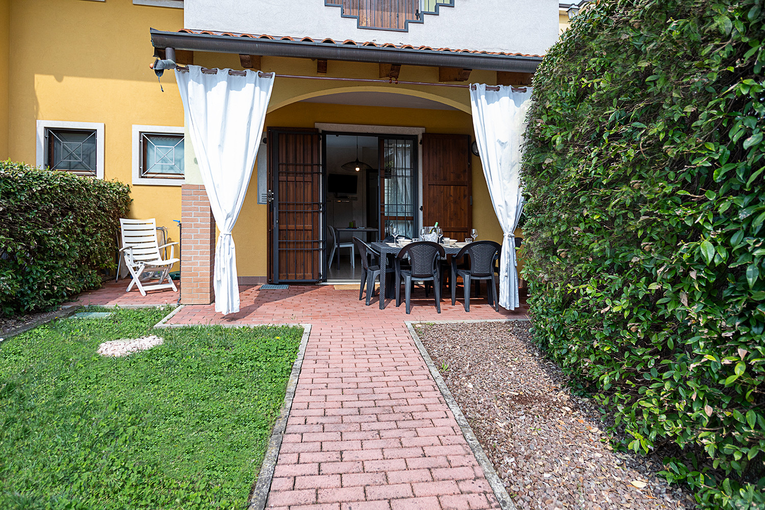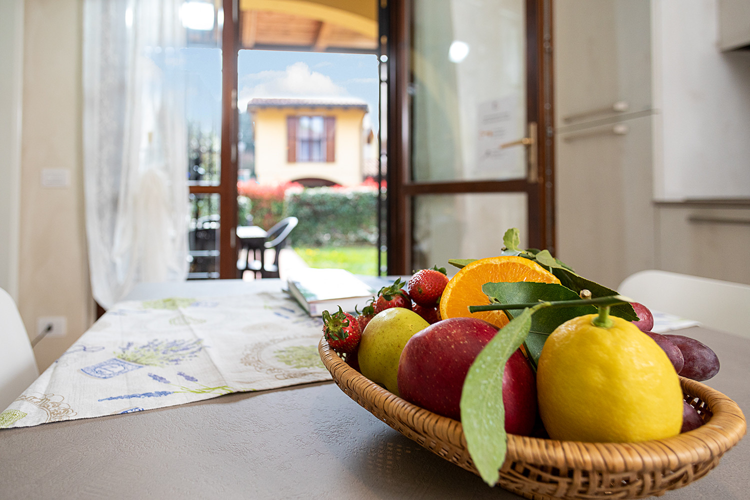 Die Apple-Wohnung befindet sich im ersten Stock innerhalb des ruhigen Wohnkomplexes Vigneti del Garda, etwa 3 km von Lazise und dem Seeufer entfernt, direkt im Zentrum der Fraktion Colà, wo sich Bars, einige typische Restaurants, ein kleiner Supermarkt und der Garda-Thermalbadepark befinden. Der Wohnkomplex verfügt über einen Erwachsenenpool mit Liegen, einen Kinderpool (Öffnungszeiten garantiert vom 15.06. - 21.09. mit ausgehängten Öffnungszeiten und Anwesenheit eines Rettungsschwimmers), Tischtennis und einen kleinen Kinderspielplatz. Die Zweizimmerwohnung kann 3 Erwachsene oder zwei Erwachsene und zwei Kinder aufnehmen und verfügt über ein Schlafzimmer mit Balkon und Aussicht, ein Badezimmer mit Duschkabine und Waschmaschine, einen Wohnbereich mit Schlafsofa, Satelliten-TV, Klimaanlage, WLAN und eine Küche mit Geschirrspüler, Kühlschrank mit Gefrierfach, Ofen, Kaffeemaschine, Toaster. Möblierte Terrasse mit Tisch und Stühlen für Mahlzeiten im Freien. Im Erdgeschoss haben die Gäste Zugang zu einem kleinen privaten Garten mit einem teilweise überdachten Fahrradabstellbereich. Überdachter privater Parkplatz innerhalb des Komplexes.