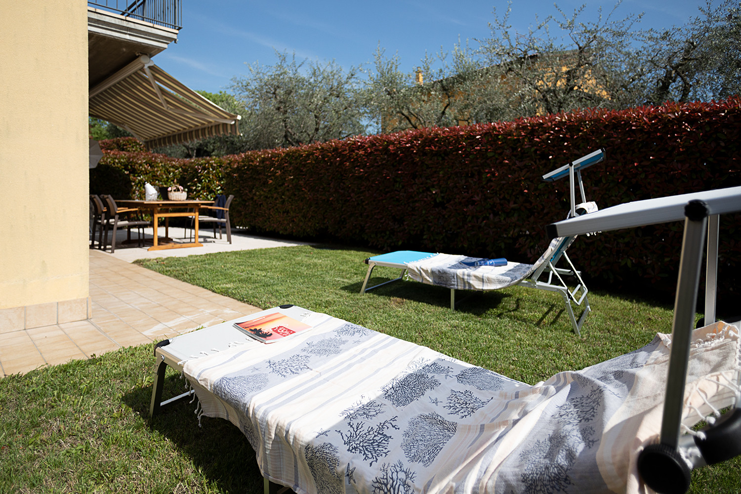 Modern, ground floor apartment with lovely large outdoor area with grass and patio, only a short step away to the shared pool which was very quiet (August). Convenient location to walk to the lake and town. Apartment had everything we needed including air conditioning and a washing machine. Regarda Travel were extremely helpful before and during our stay.