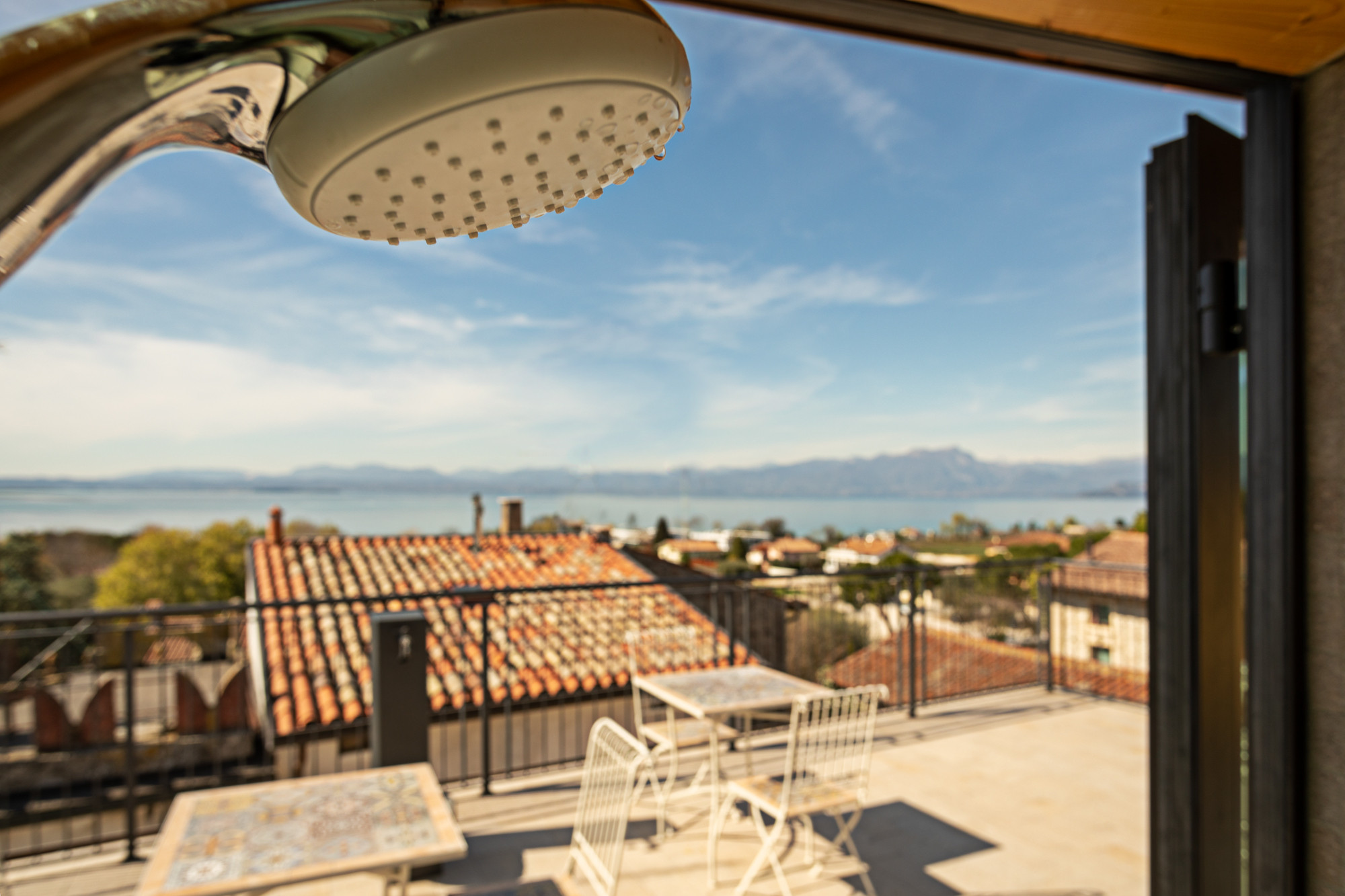 Das Highlight der Residenz ist definitiv die wunderschöne, gemeinsam genutzte Panorama-Sonnenterrasse mit weitem Blick auf den See, ausgestattet mit 3 Cafétischen, einem großen Sonnenschirm, Liegestühlen und Sonnenliegen für die Gäste. Hier finden Sie auch eine praktische Dusche zum Erfrischen an heißen Sommertagen und eine Gemeinschaftswaschmaschine.