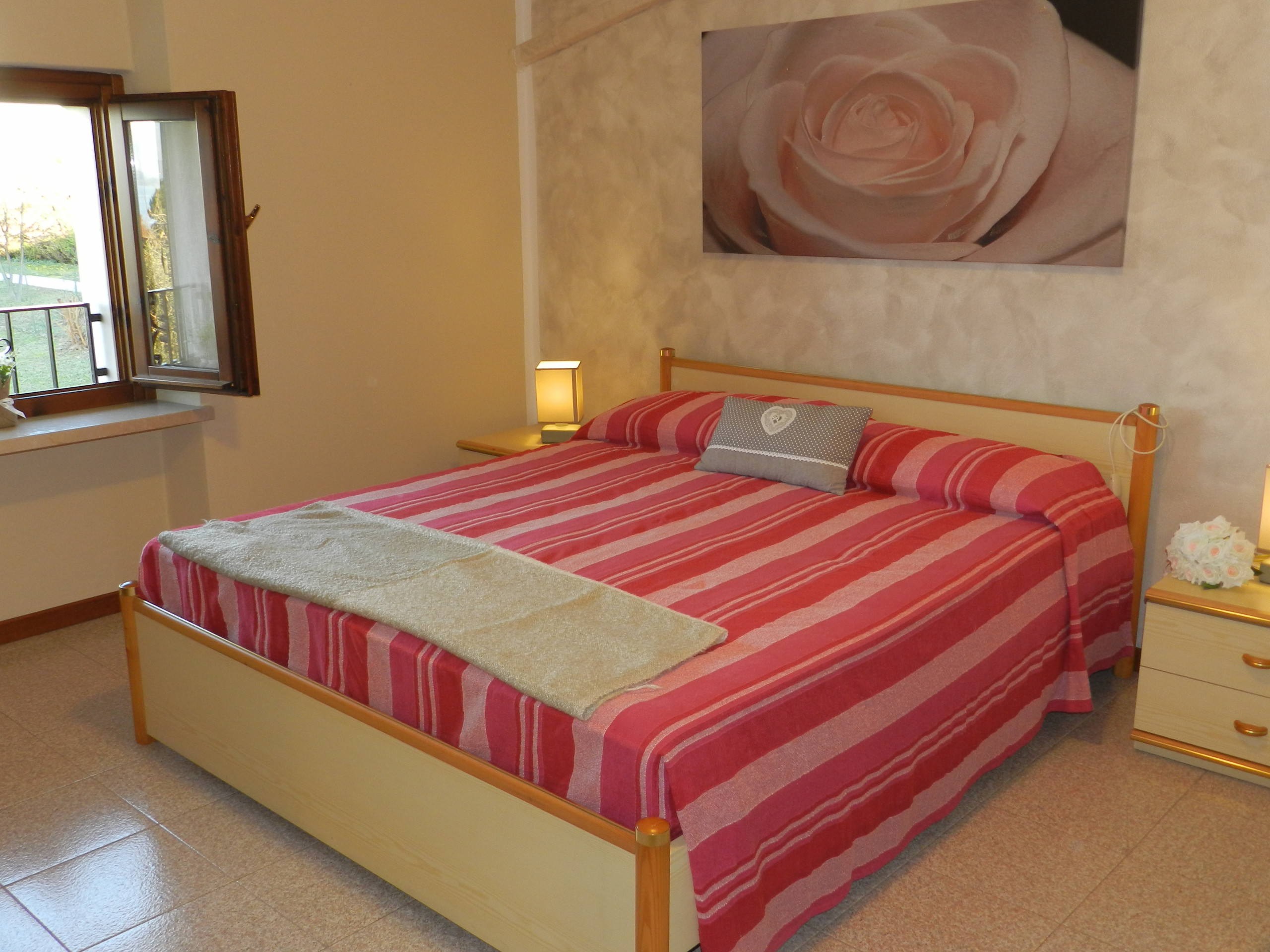 Helle Dreizimmerwohnung im ersten Stock, bestehend aus Wohnzimmer mit Küchenzeile, Kühlschrank mit Gefrierfach, Tisch mit Stühlen, Kaffeemaschine, Toaster, Kochfeld. Doppelbettsofa, Sat-TV, WLAN, Klimaanlage/Heizung (nur im Wohnzimmer). Elternschlafzimmer mit Kleiderschrank, Safe. Zimmer mit zwei Einzelbetten (können nebeneinander platziert werden), kleiner Kleiderschrank, Badezimmer mit Duschkabine, Bidet, Spiegel und Waschmaschine. Zugang über Treppe zum großen Garten, ausgestattet mit Tischen, Stühlen und Sonnenschirmen. Wir empfehlen diese Wohnung für Familien mit Kindern oder Freundesgruppen, die eine Unterkunft in der Nähe des Sees suchen, in ruhiger Lage mit allen Annehmlichkeiten eines Ferienortes.