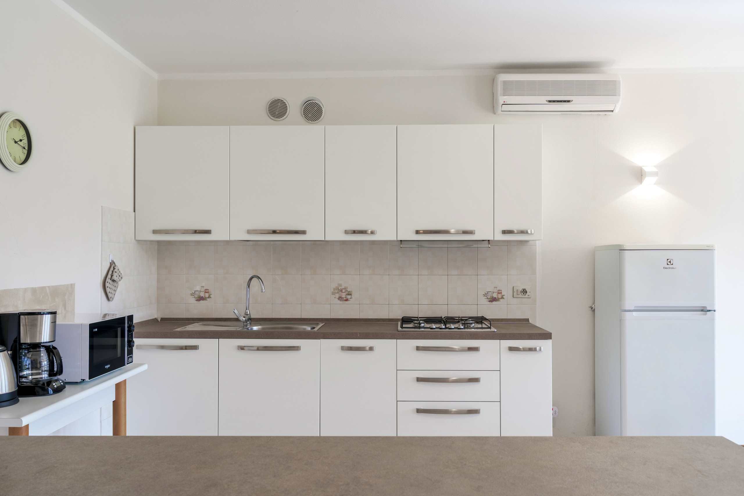 thank you for your kind review. I am sorry you did not find the washing up liquid, it is normally under the wash basin. We normally do not put salt, pepper and other type of foods for hygienical reasons. We thank you for the coffee filters that you left for other guests. In Italy we use the moka to make coffee so we are not so used to keep them. I hope to welcome you again in the future Best regards Romina |
