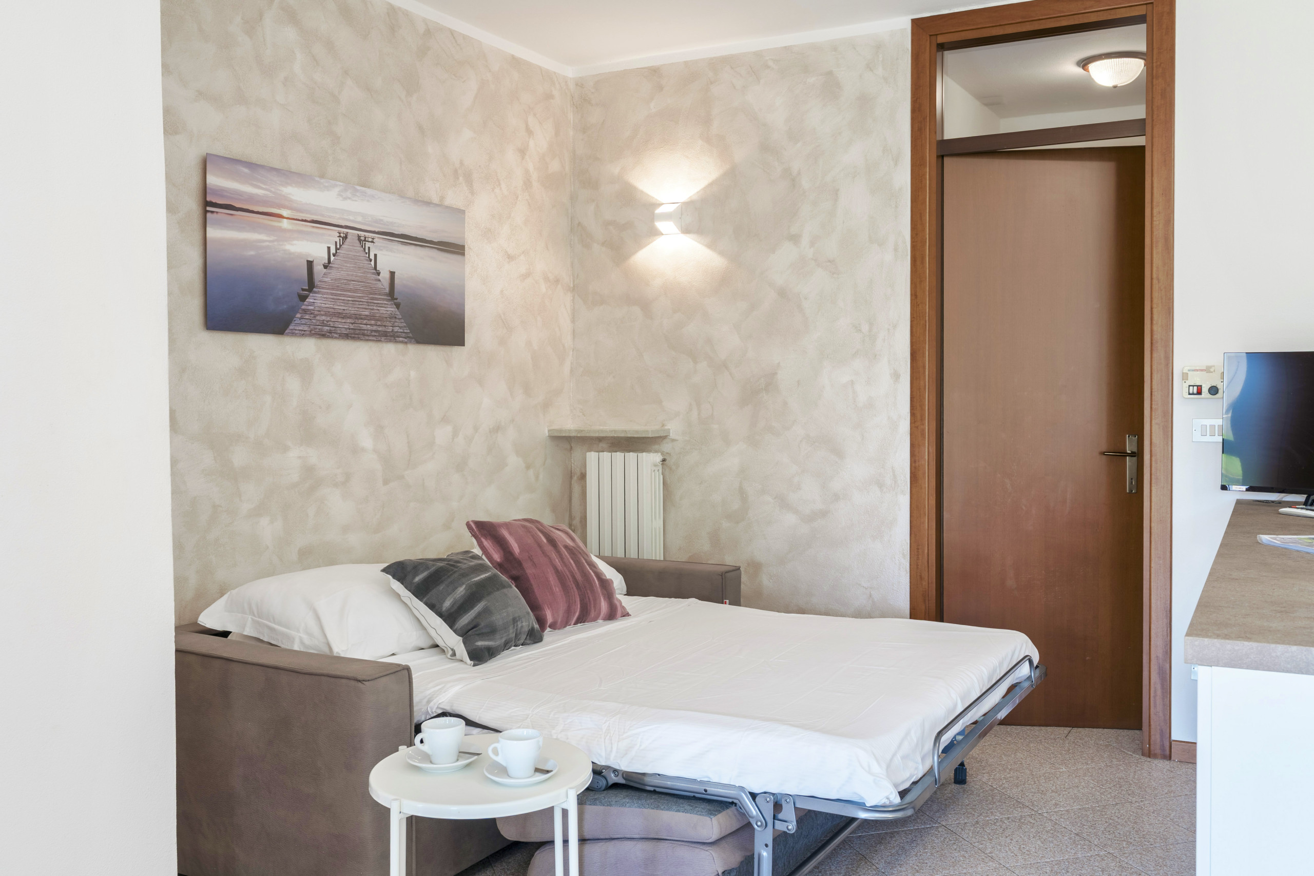 Nous avons passé un excellent séjour à Lazise. L’emplacement était idéal et l’accès à la piscine du camping un vrai avantage vu la chaleur. Manque un peu d équipement dans la cuisine comme un micro ondes. En été la climatisation ne devrait pas faire l’objet d’un surcoût (10€/j, clim uniquement dans la pièce de vie) car la situation de l’appartement (n°5) au RDC sans volet ne permet pas de laisser les fenêtres ouvertes la nuit. De plus la façade est constituée uniquement de fenêtres donc en juillet la température a rapidement été intenable dans la pièce de vie. Si on veut profiter de la clim dans les chambres il faut laisser les portes ouvertes mais là encore l’absence de volets dans la pièce de vie sera problématique si vous ne voulez pas être réveillé à 5h du matin surtout si vous prévoyez d’utiliser le canapé lit. Romina et sa collaboratrice Valentina sont charmantes, disponibles et très professionnelles.