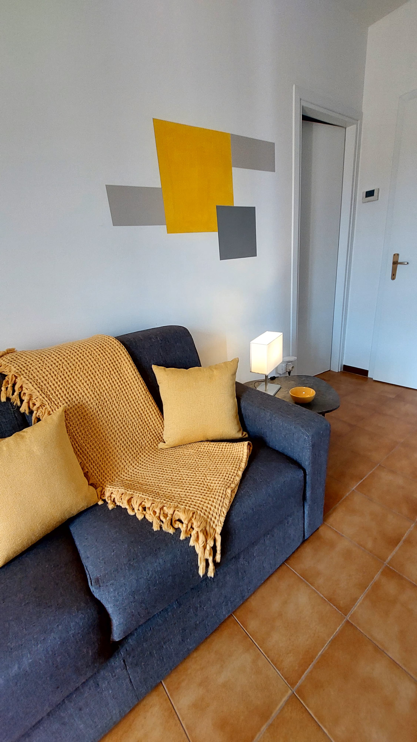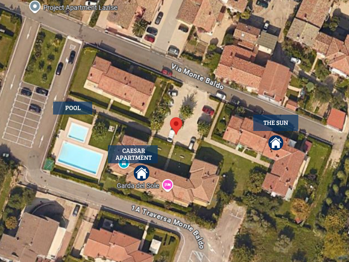 Die Apple-Wohnung befindet sich im ersten Stock innerhalb des ruhigen Wohnkomplexes Vigneti del Garda, etwa 3 km von Lazise und dem Seeufer entfernt, direkt im Zentrum der Fraktion Colà, wo sich Bars, einige typische Restaurants, ein kleiner Supermarkt und der Garda-Thermalbadepark befinden. Der Wohnkomplex verfügt über einen Erwachsenenpool mit Liegen, einen Kinderpool (Öffnungszeiten garantiert vom 15.06. - 21.09. mit ausgehängten Öffnungszeiten und Anwesenheit eines Rettungsschwimmers), Tischtennis und einen kleinen Kinderspielplatz. Die Zweizimmerwohnung kann 3 Erwachsene oder zwei Erwachsene und zwei Kinder aufnehmen und verfügt über ein Schlafzimmer mit Balkon und Aussicht, ein Badezimmer mit Duschkabine und Waschmaschine, einen Wohnbereich mit Schlafsofa, Satelliten-TV, Klimaanlage, WLAN und eine Küche mit Geschirrspüler, Kühlschrank mit Gefrierfach, Ofen, Kaffeemaschine, Toaster. Möblierte Terrasse mit Tisch und Stühlen für Mahlzeiten im Freien. Im Erdgeschoss haben die Gäste Zugang zu einem kleinen privaten Garten mit einem teilweise überdachten Fahrradabstellbereich. Überdachter privater Parkplatz innerhalb des Komplexes.