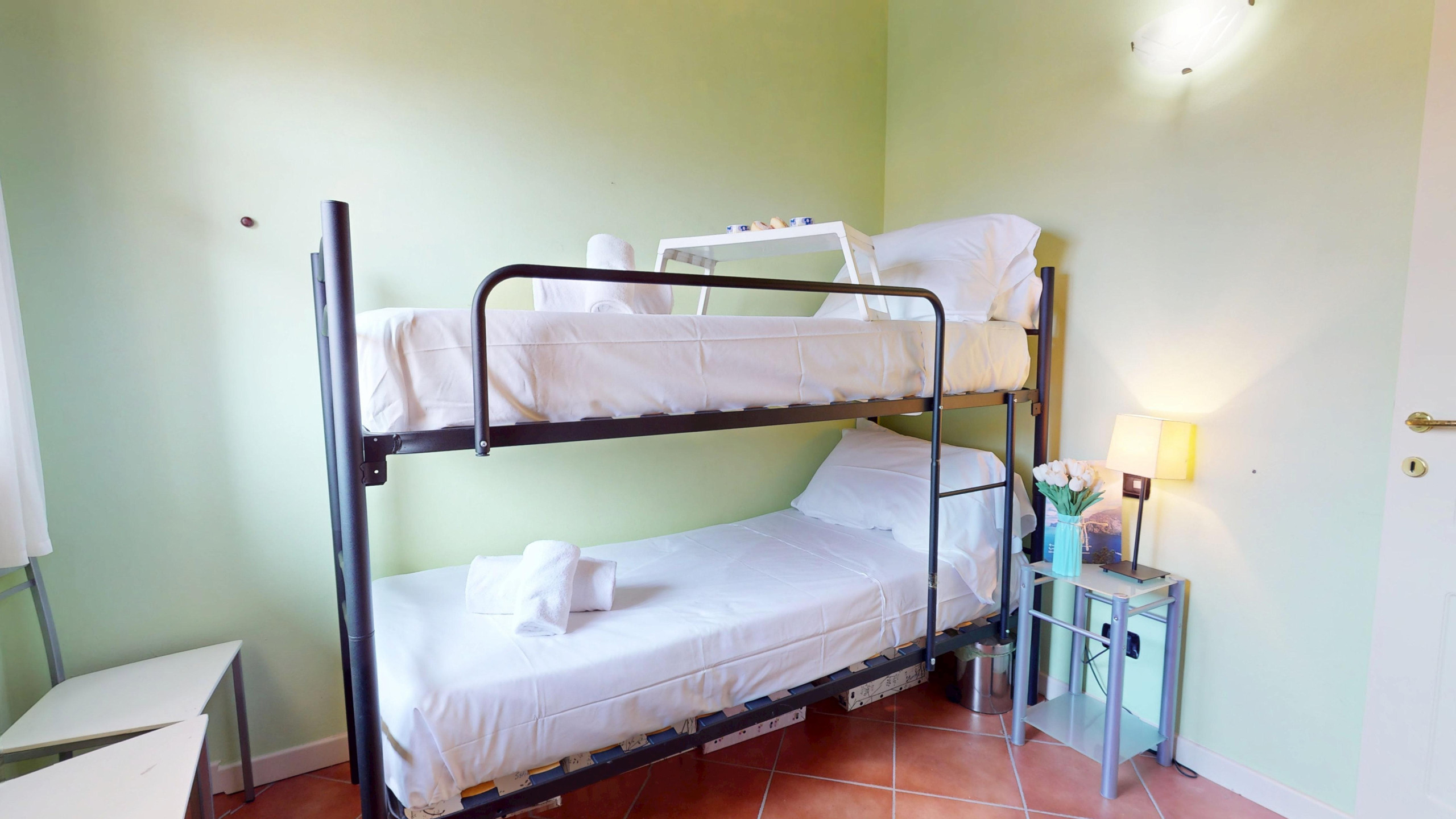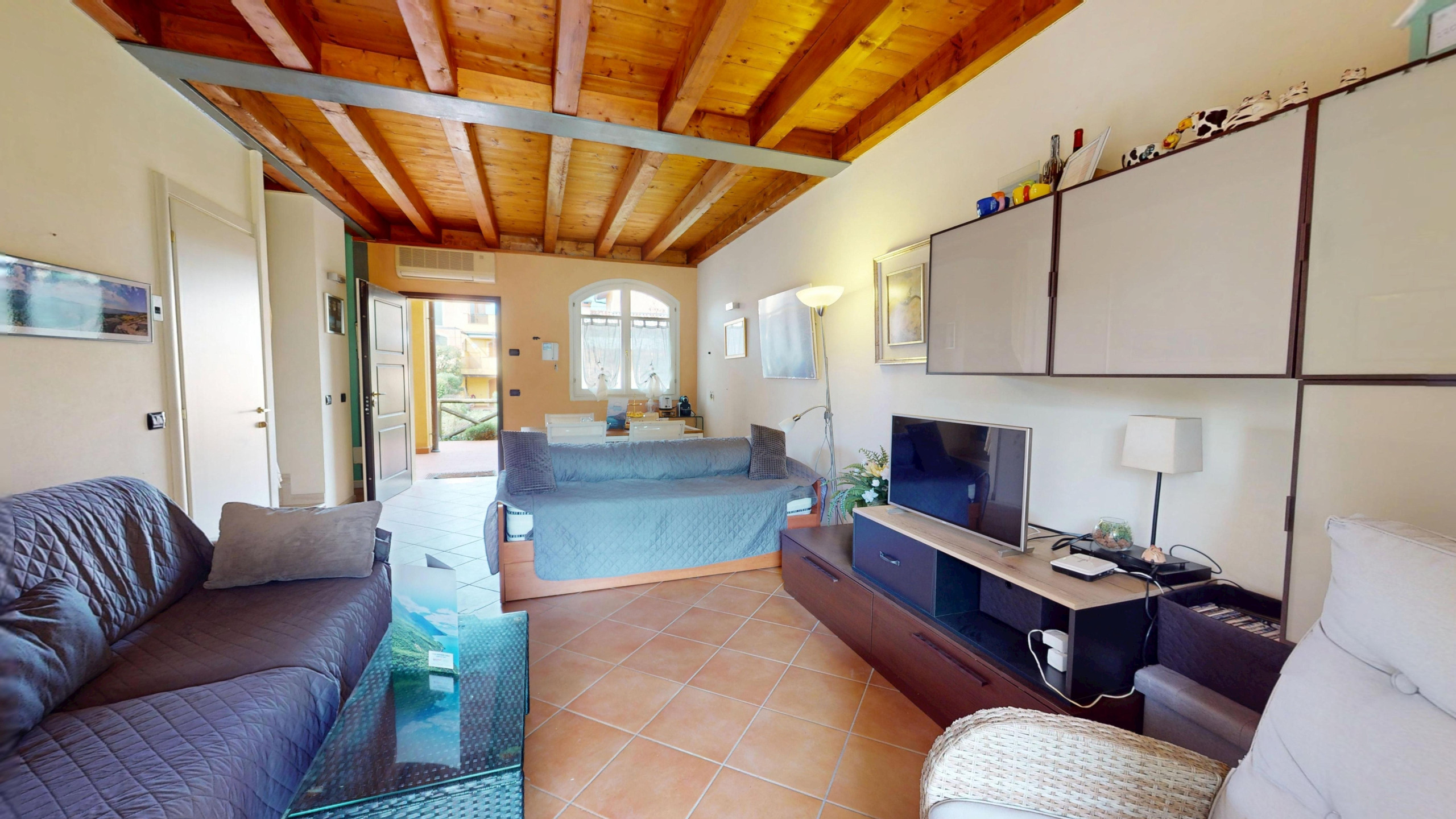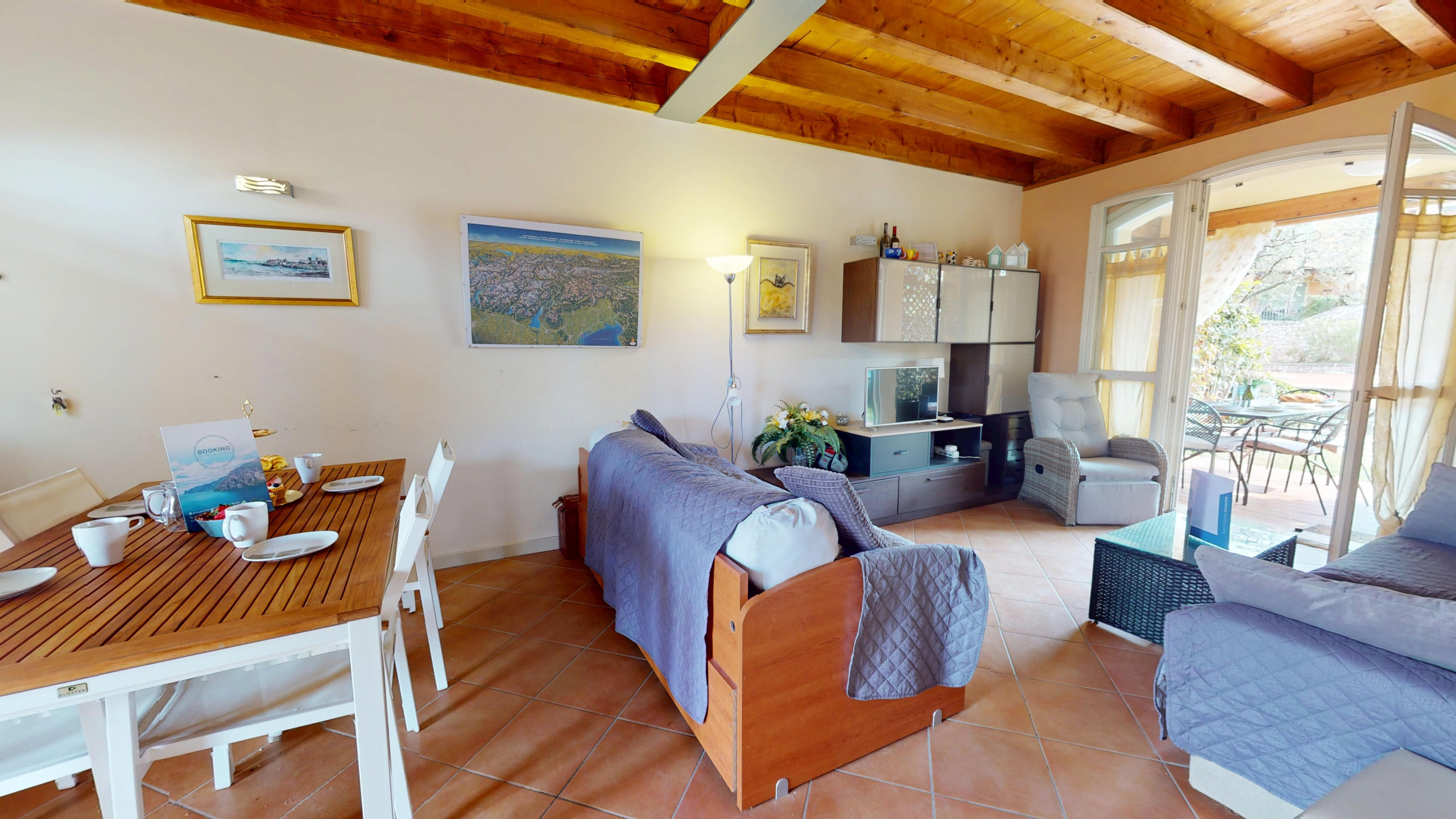 Die Wohnung, hell und funktional, ist die ideale Zuflucht nach einem Tag, der mit der Erkundung des Gardasees verbracht wurde: Die amerikanische Küche, komplett ausgestattet, lässt Sie sich wie zu Hause fühlen, ob Sie bequem kochen oder am Morgen einen Kaffee genießen möchten, ein gemütliches Schlafsofa im Wohnbereich, ein Doppelschlafzimmer, ein zweites Zimmer mit Etagenbett, beide mit Blick auf den Garten.