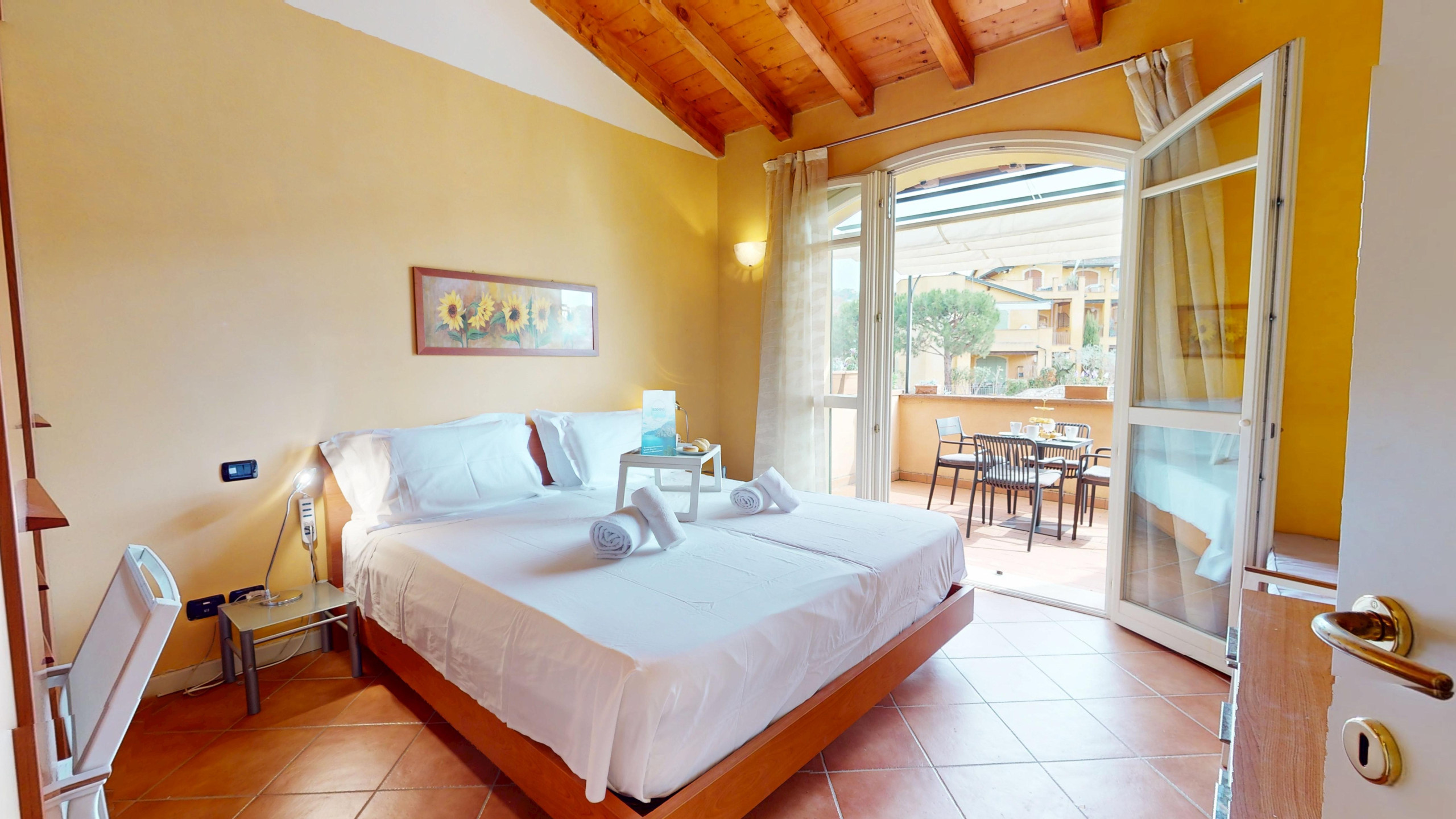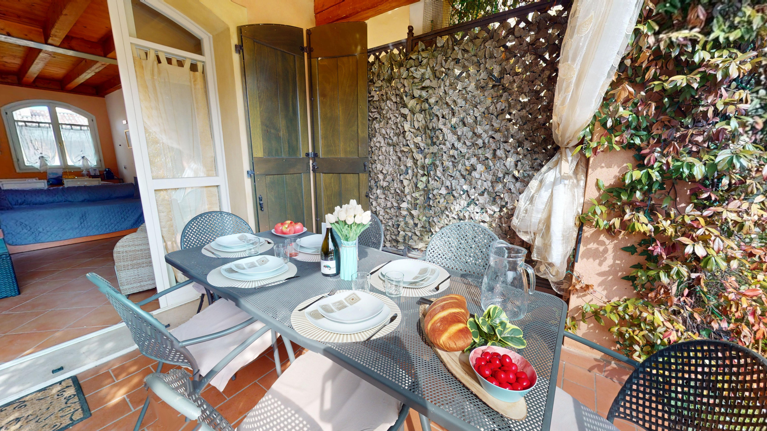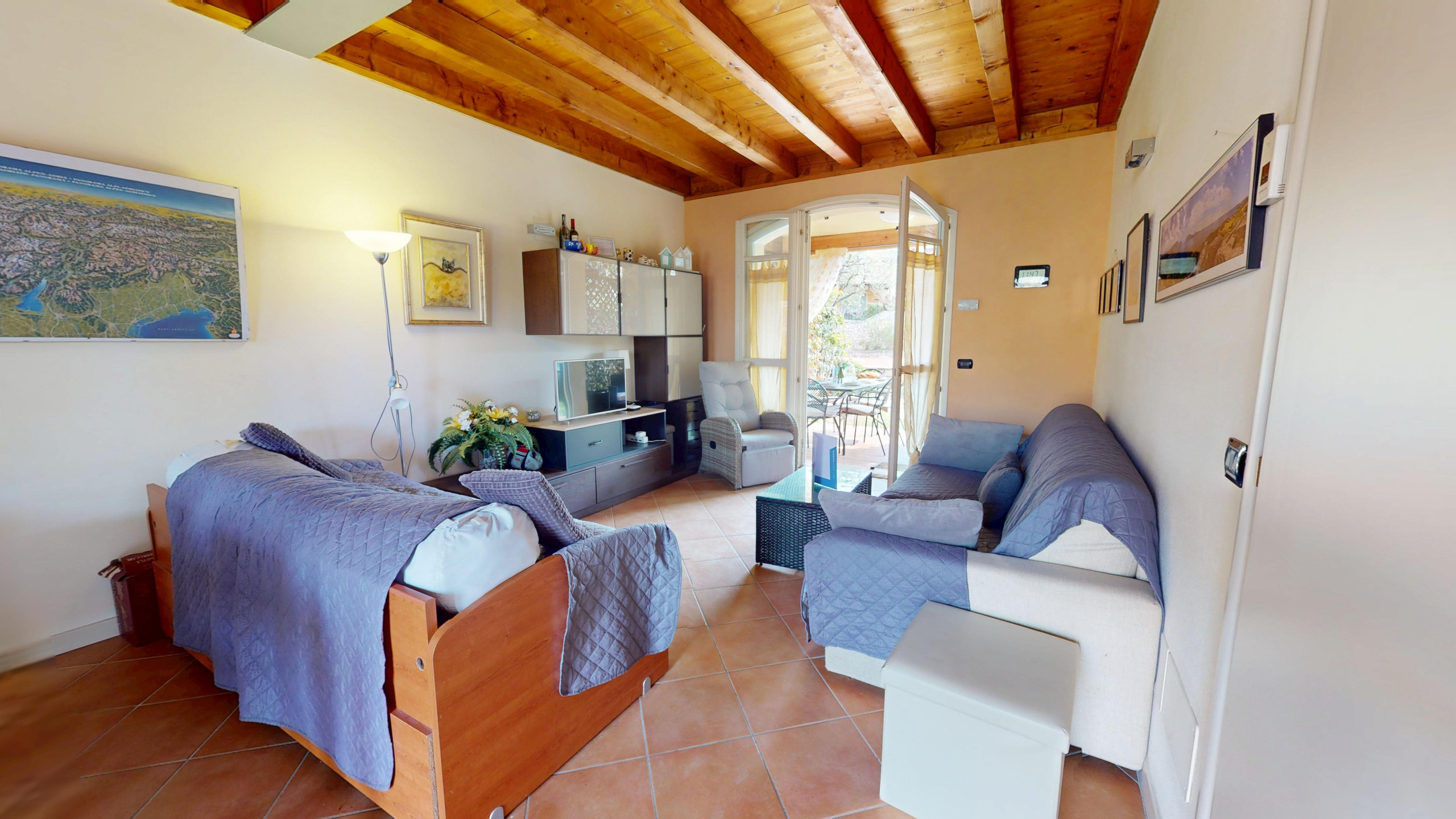 Die Wohnung, hell und funktional, ist die ideale Zuflucht nach einem Tag, der mit der Erkundung des Gardasees verbracht wurde: Die amerikanische Küche, komplett ausgestattet, lässt Sie sich wie zu Hause fühlen, ob Sie bequem kochen oder am Morgen einen Kaffee genießen möchten, ein gemütliches Schlafsofa im Wohnbereich, ein Doppelschlafzimmer, ein zweites Zimmer mit Etagenbett, beide mit Blick auf den Garten.