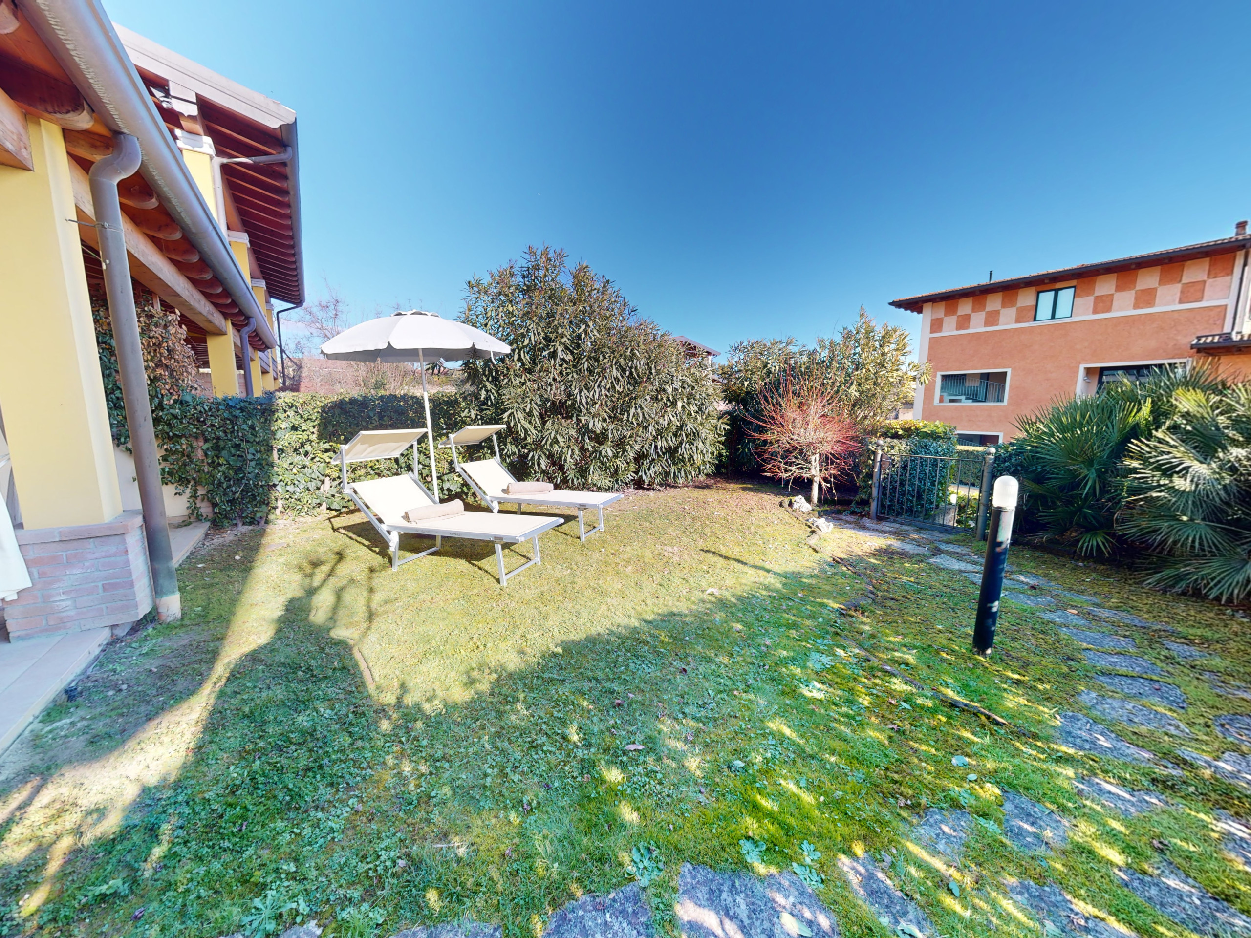Garda Pleasure kann bis zu 5 Personen beherbergen, dank zweier sorgfältig eingerichteter Schlafzimmer: eines mit Doppelbett und das andere mit Stockbett, einem zusätzlichen Einzelbett und einem Arbeitsbereich mit PC-Arbeitsplatz, ideal um funktionale und private Räume für jeden Gast zu gewährleisten, mit Zugang zum Hinterhofgarten.