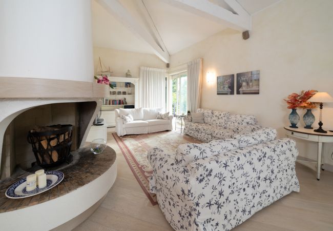 Der Eingang öffnet sich zum Hauptsalon mit dekorativem Steincheminee (nicht nutzbar), drei komfortablen Sofas, Satelliten-TV und einer kleinen Bibliothek, die Entspannungsmomente für die ganze Familie garantieren. Die angrenzende Esszone, ausgestattet mit einem massiven Holztisch und 8 Sitzplätzen, bietet einen Panoramablick auf die Veranda und den Gardasee.