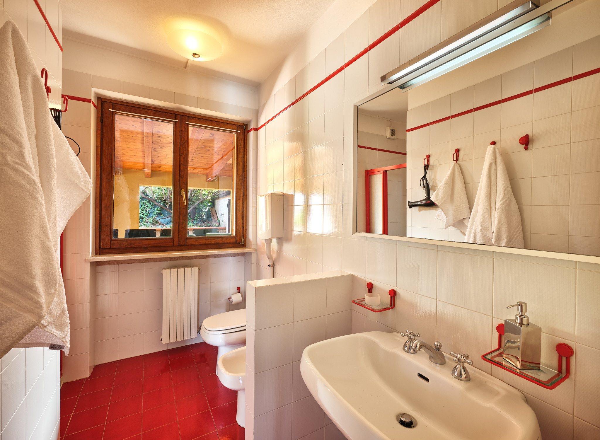Im Obergeschoss befinden sich 4 Schlafzimmer, davon 3 mit Doppelbett und offenen Kleiderschränken, ein Zimmer mit zwei Einzelbetten und einem Ausziehbett. Badezimmer mit Dusche und Badezimmer mit Badewanne, beide mit WC und Haartrockner ausgestattet.