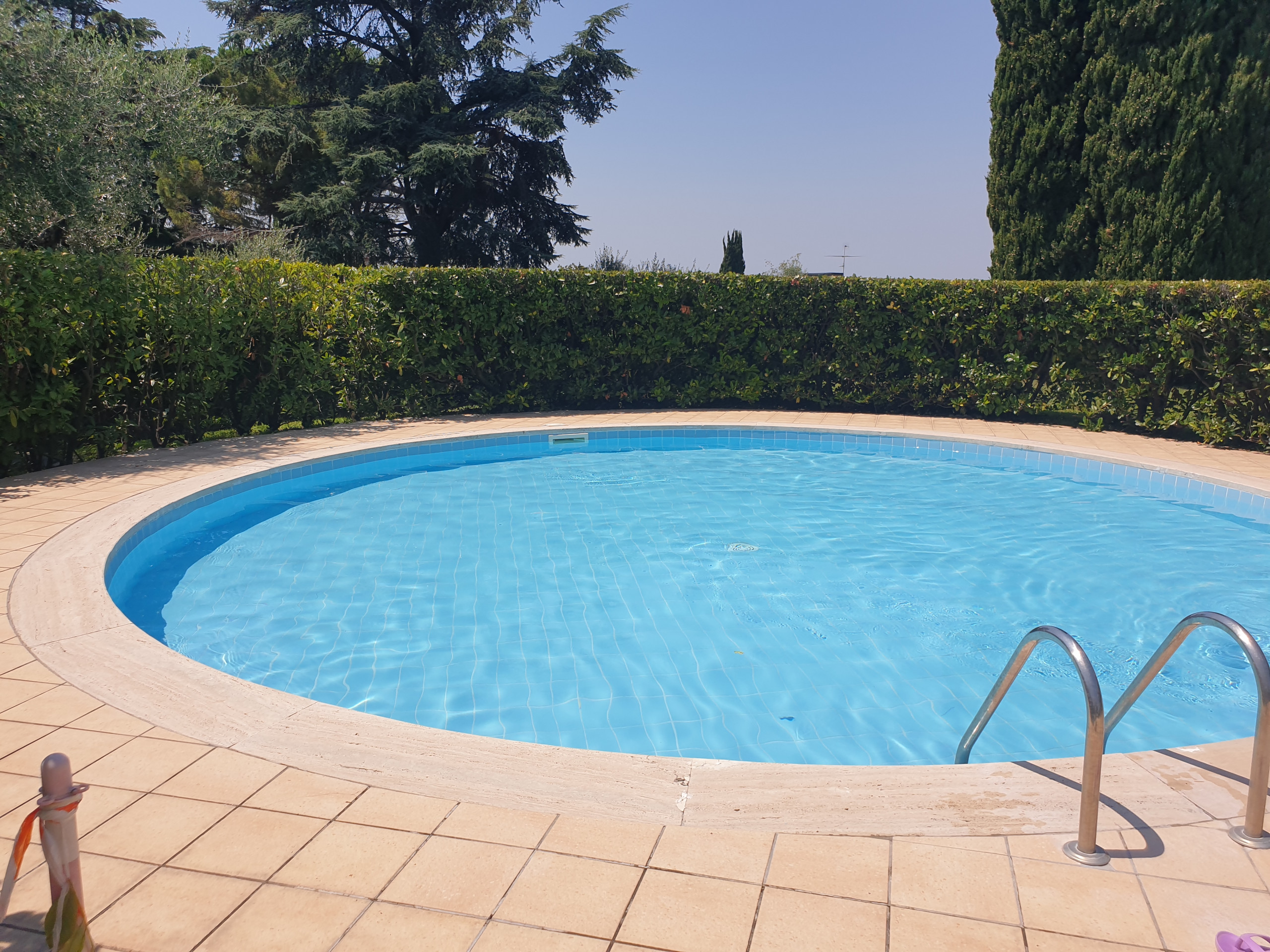 The living area overlooks a shaded garden with partial lake view, fenced and equipped with table, chairs and gas barbecue for outdoor lunches. The residential complex's swimming pool has been recently renovated and is located in an enviable position with a wonderful lake view (guaranteed opening period 15/05-30/09). Large condominium green area with swing and volleyball court. Green area used as solarium and relaxation zone. Pets allowed upon request. Parking space within the complex.
