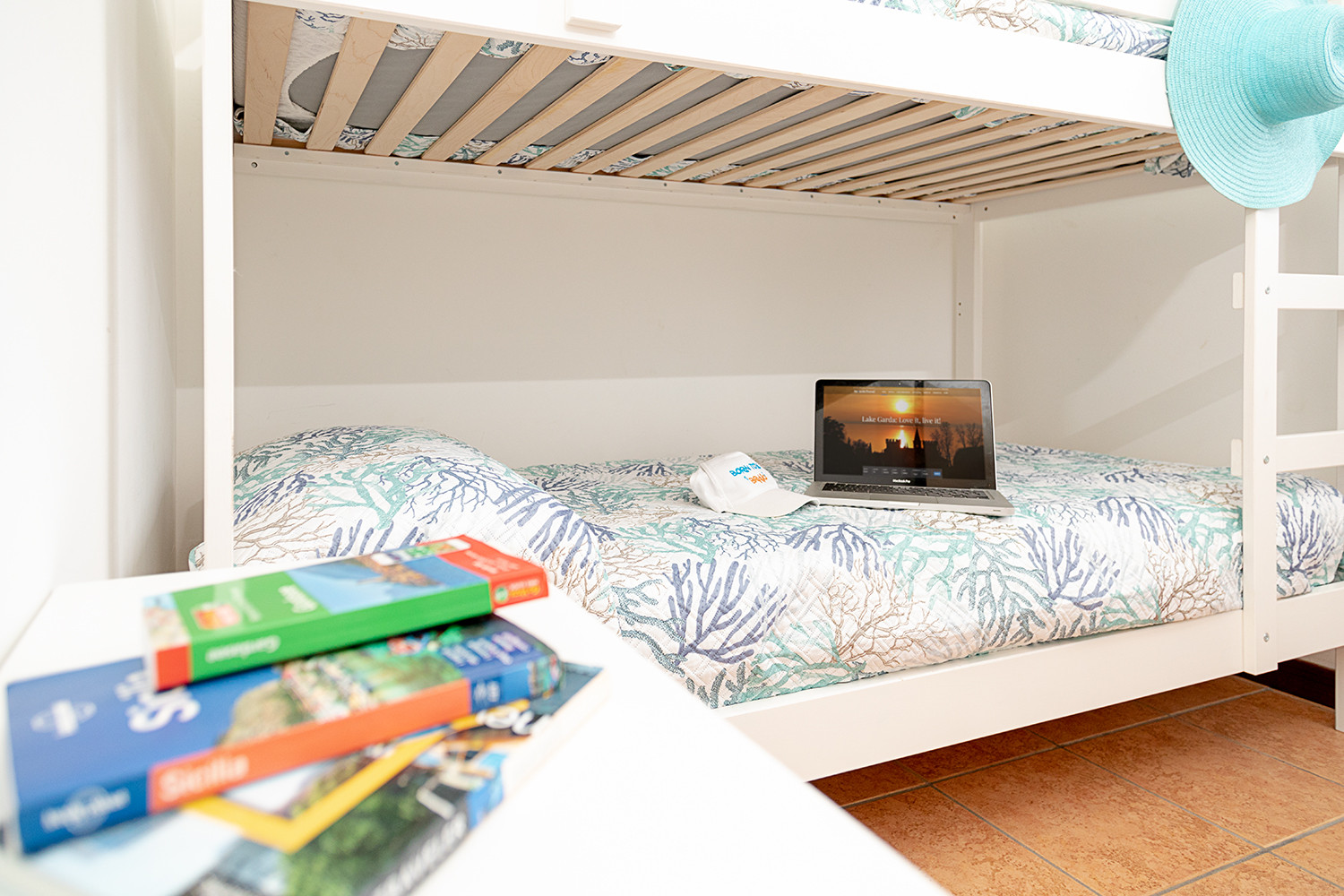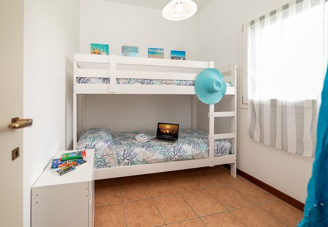 The apartment, partially renovated, consists of a bright living area with a small kitchen featuring an induction cooktop, refrigerator and freezer, dishwasher, oven and a double sofa bed suitable for accommodating one adult or two children. Toaster, kettle, air conditioning, TV (no satellite) and wifi available. Double bedroom with wardrobe, children's room with bunk bed. Bathroom with shower cabin and washing machine. Residential complex parking available. Small-sized pets admitted upon request with supplement.