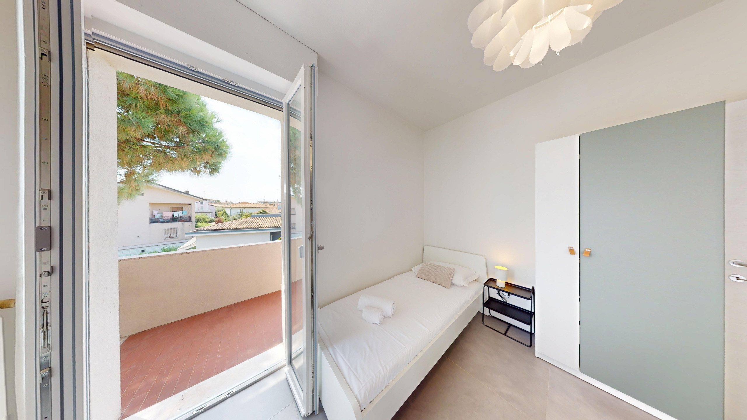 The shower room is functional and well-maintained, while air conditioning and heating ensure optimal comfort in every season. Free WiFi allows you to stay constantly connected, and services such as washing machine, dishwasher, and iron are available to make the stay more convenient.