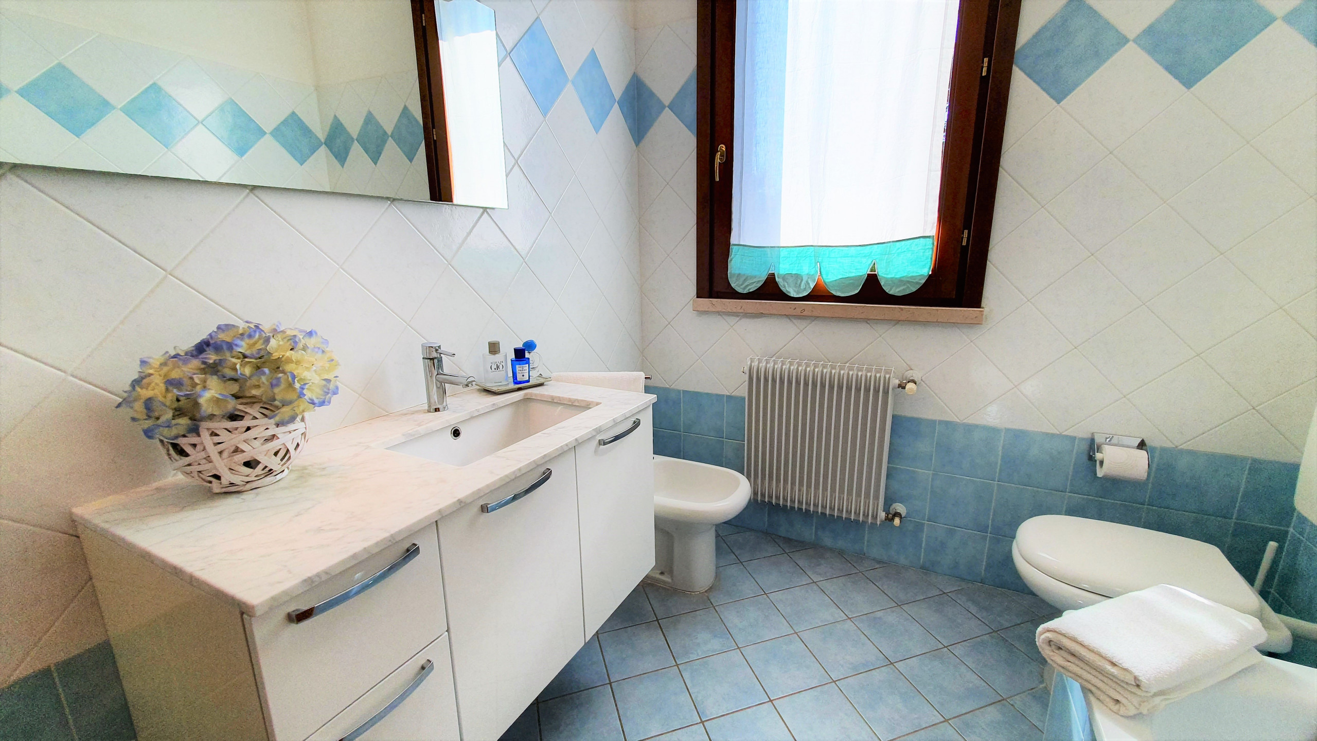 Big three-room apartment composed by living room completely equipped for 7 people with fridge, stove, backing oven, microwave oven, dishwasher, coffee machine, toaster. Comfortable double sofa-bed, Tv Sat, airco. Big bedroom with a double bed and a single bed, two windows, big wardrobe and airco. Second bedroom with two single beds, terrace, airco and private bathroom with shower box and WC, window. Second bathroom with shower box, WC, washing machine, window. No Smoking apartment. Pets on request.