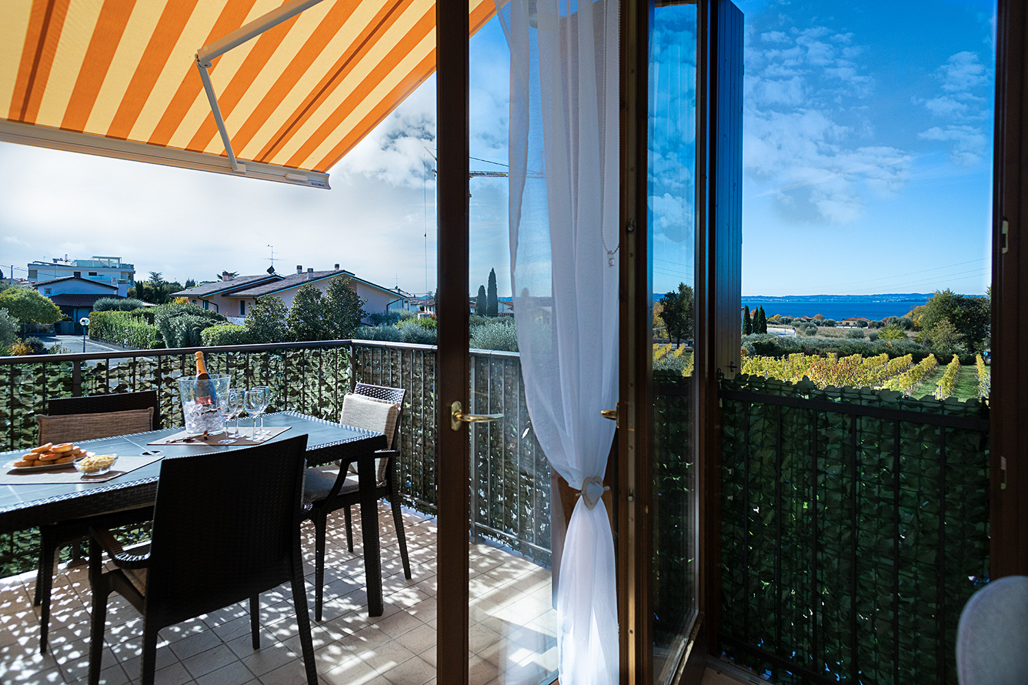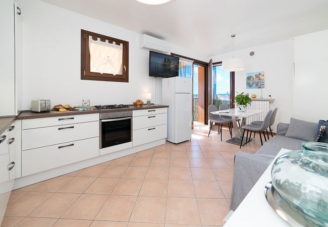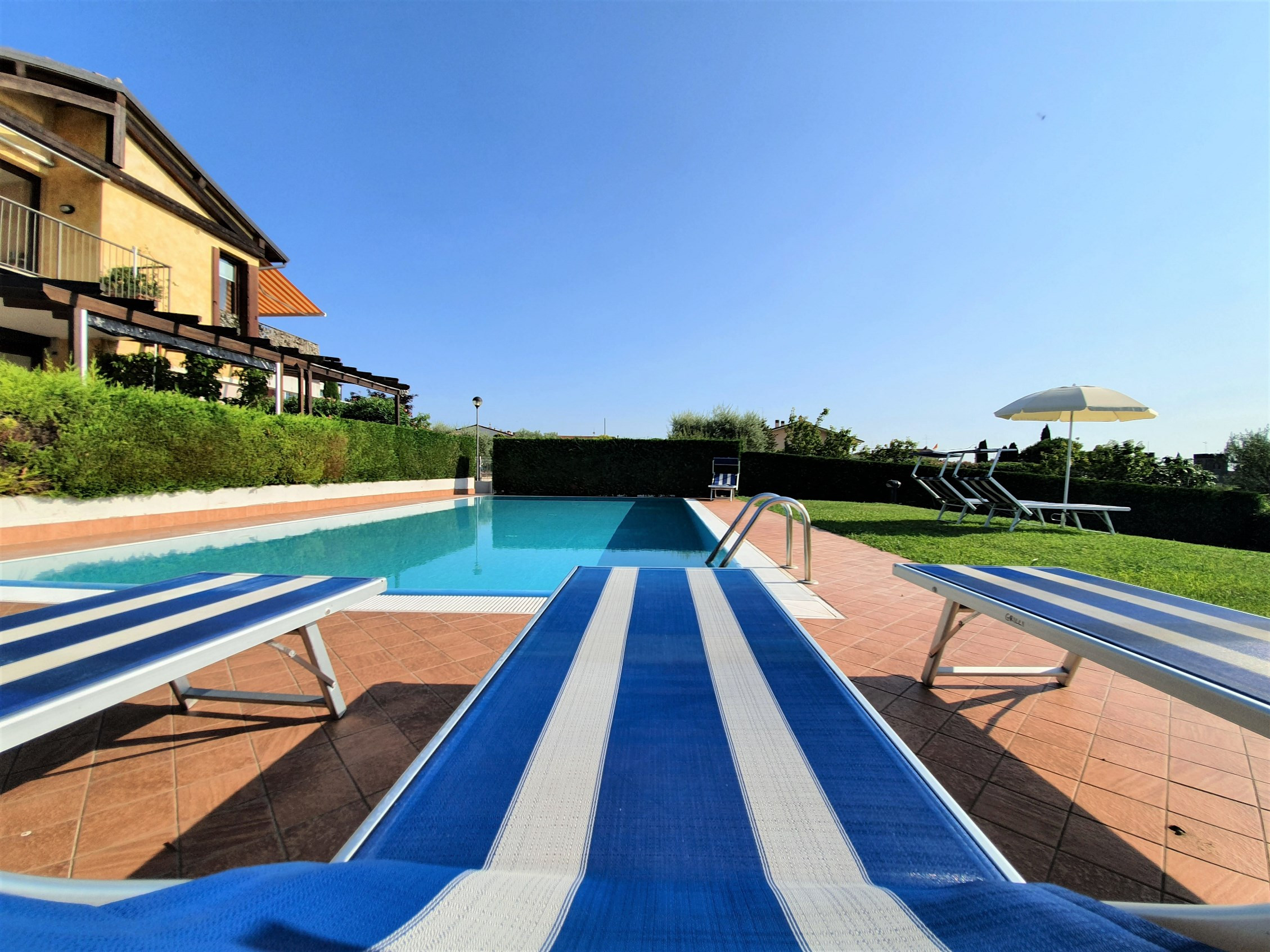 The comfortable Iris apartment of about 65sqm is located on the ground floor of a quiet residential complex and offers a private garden on three sides equipped with a sun shade, table and chairs where you can relax on warm summer days or after a trip to the characteristic villages of Lake Garda.